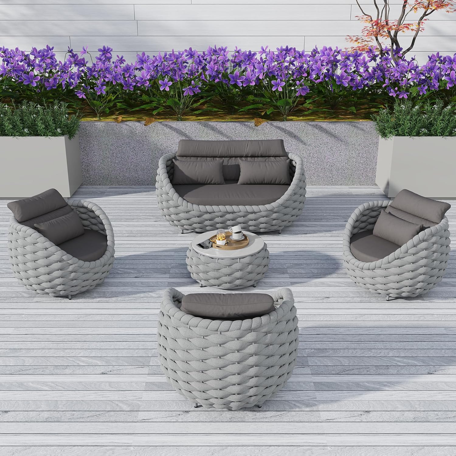 - Stylish & Multi-functional Design: Inspired by bird nests, our outdoor patio furniture set flaunts a modern yet warm look, fitting perfectly in any indoor or outdoor space. Hand-woven with Polyester rope, it exhibits an exquisite craftsmanship. Its versatility allows you to create a cozy corner in your patio, garden, or even living room effortlessly.