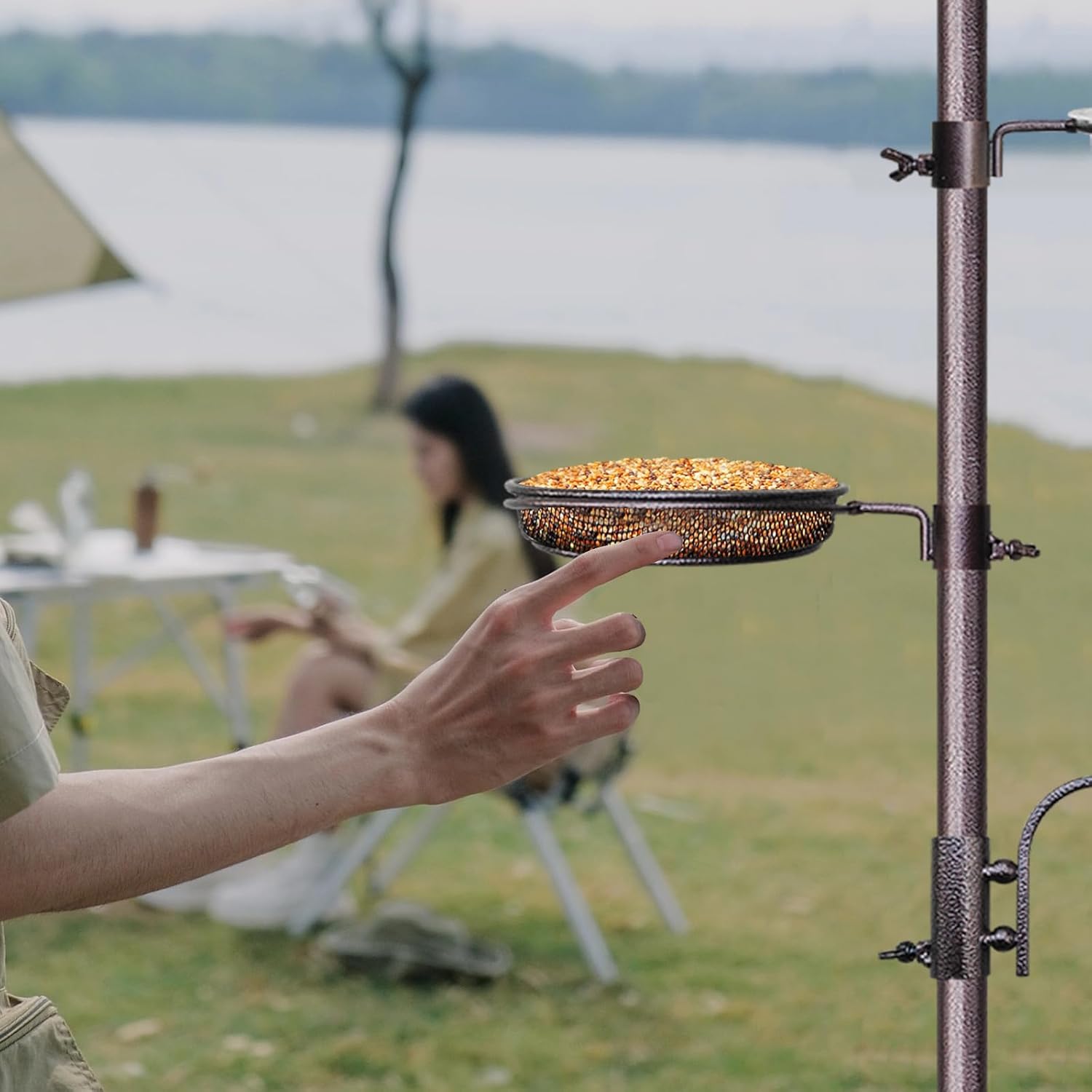 - Superior bird feeders for outdoors: In addition to four large top hooks, the newly upgraded bird feeder pole is also equipped with four additional small hooks, which can be used to hang bird feeders of different sizes, effectively attracting birds. In addition, there are 1 small hooks and 2 steel wire mesh trays in the middle of the bird feeding rod, which is an ideal tray for great mealworms, chicken nuggets, suet, fruits, seed mixtures and plastic water bowls