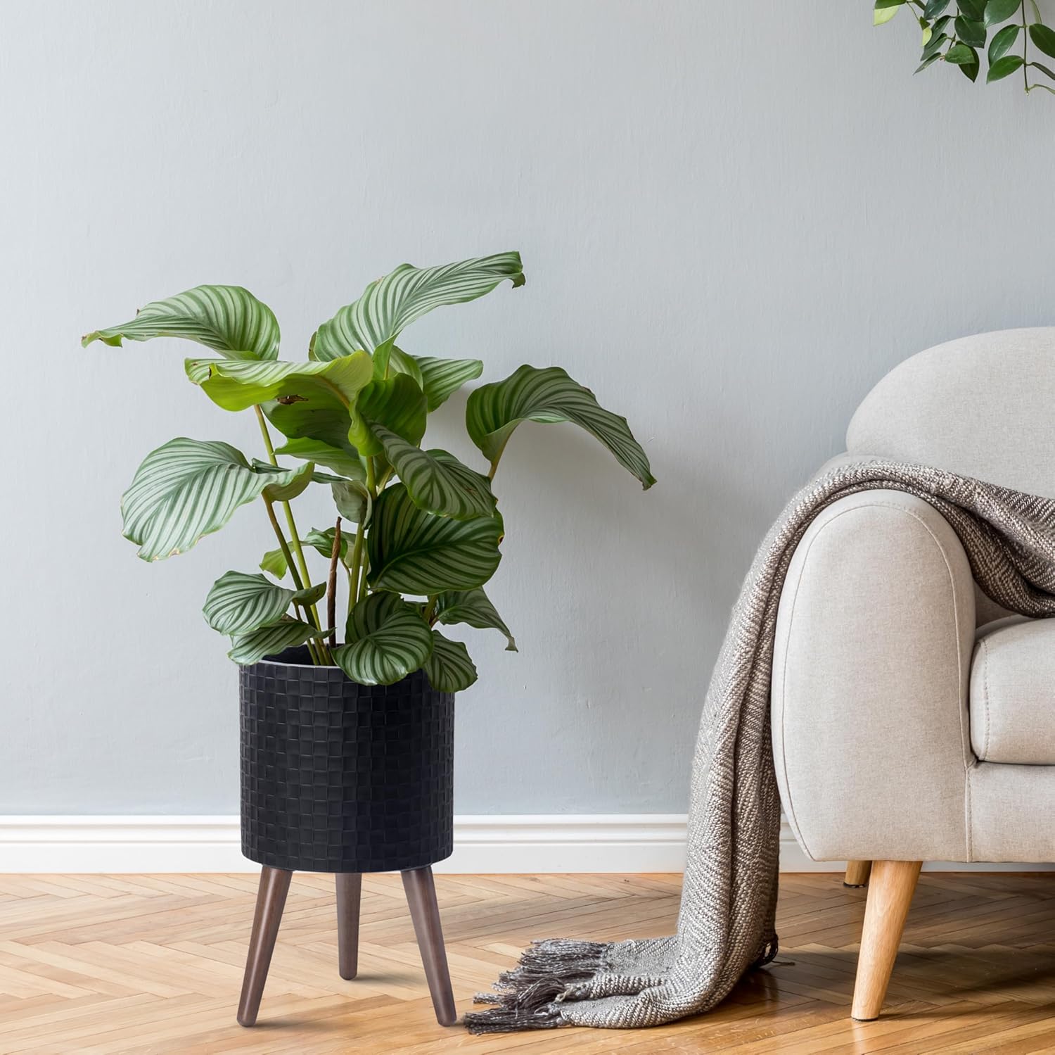 - Sturdy Wooden Legs: Supported by sleek wooden legs, this planter offers a stable base and enhances its overall aesthetic appeal.