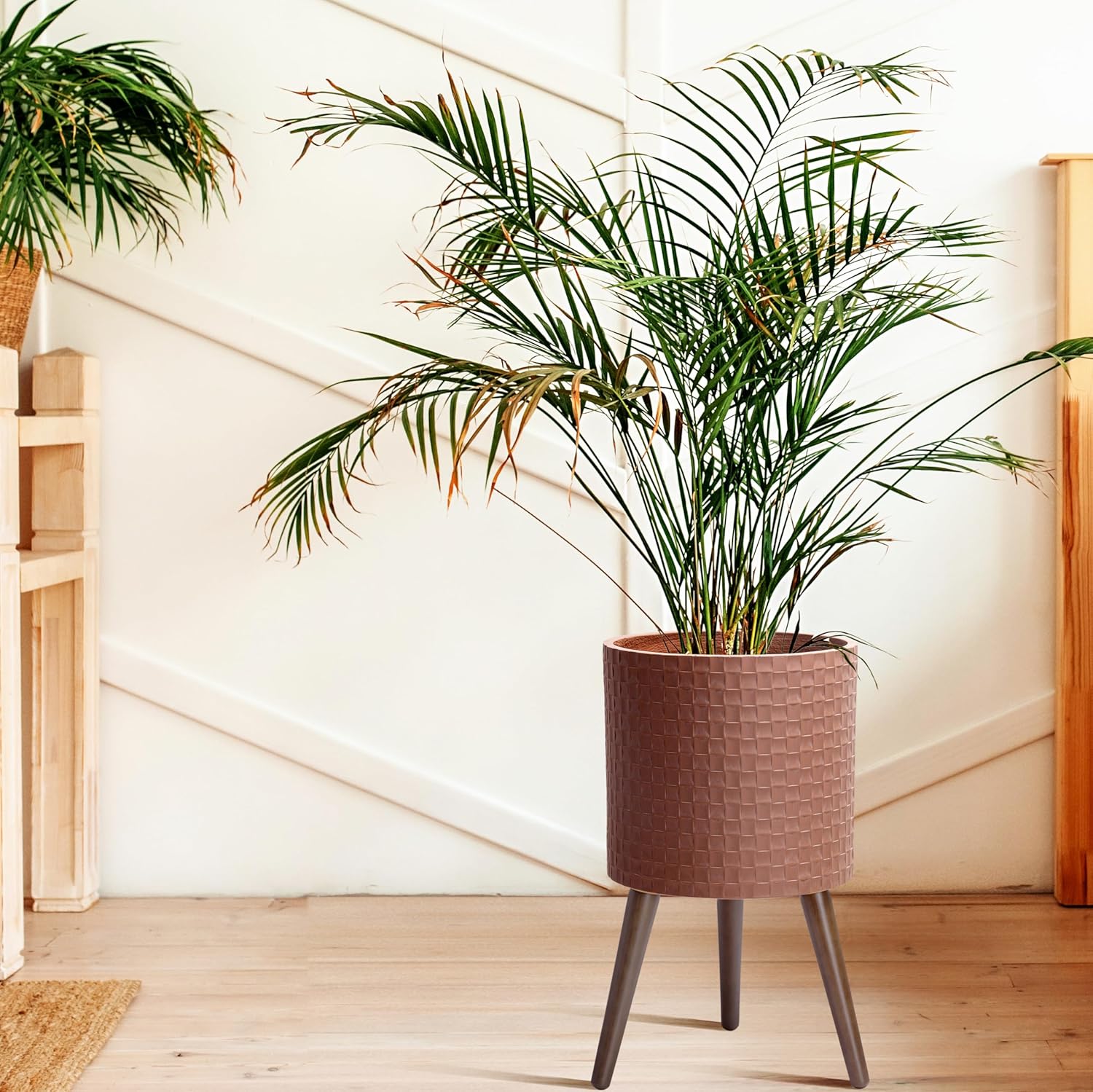 - Sturdy Wooden Legs: Supported by sleek wooden legs, this planter offers a stable base and enhances its overall aesthetic appeal.