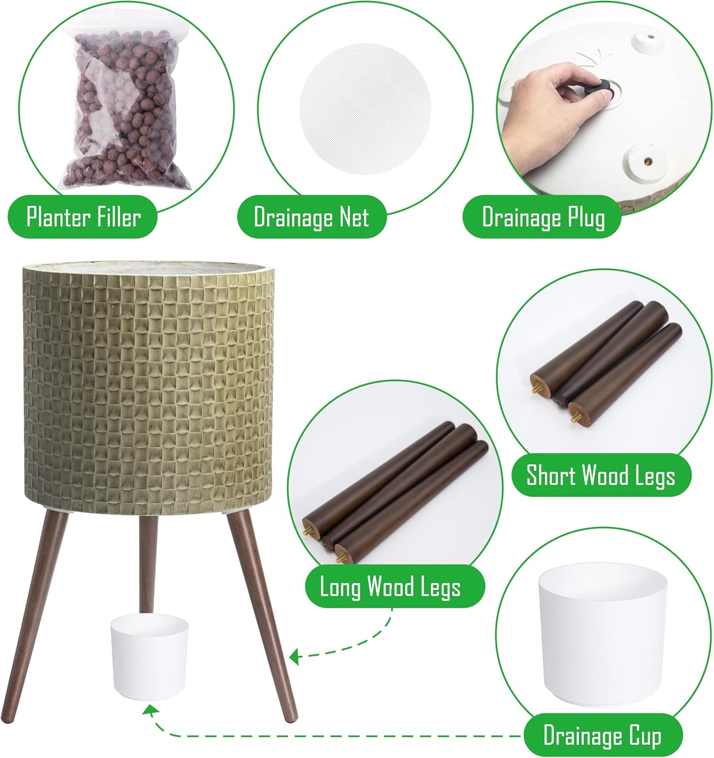 - Sturdy Wooden Legs: Supported by sleek wooden legs, this planter offers a stable base and enhances its overall aesthetic appeal.