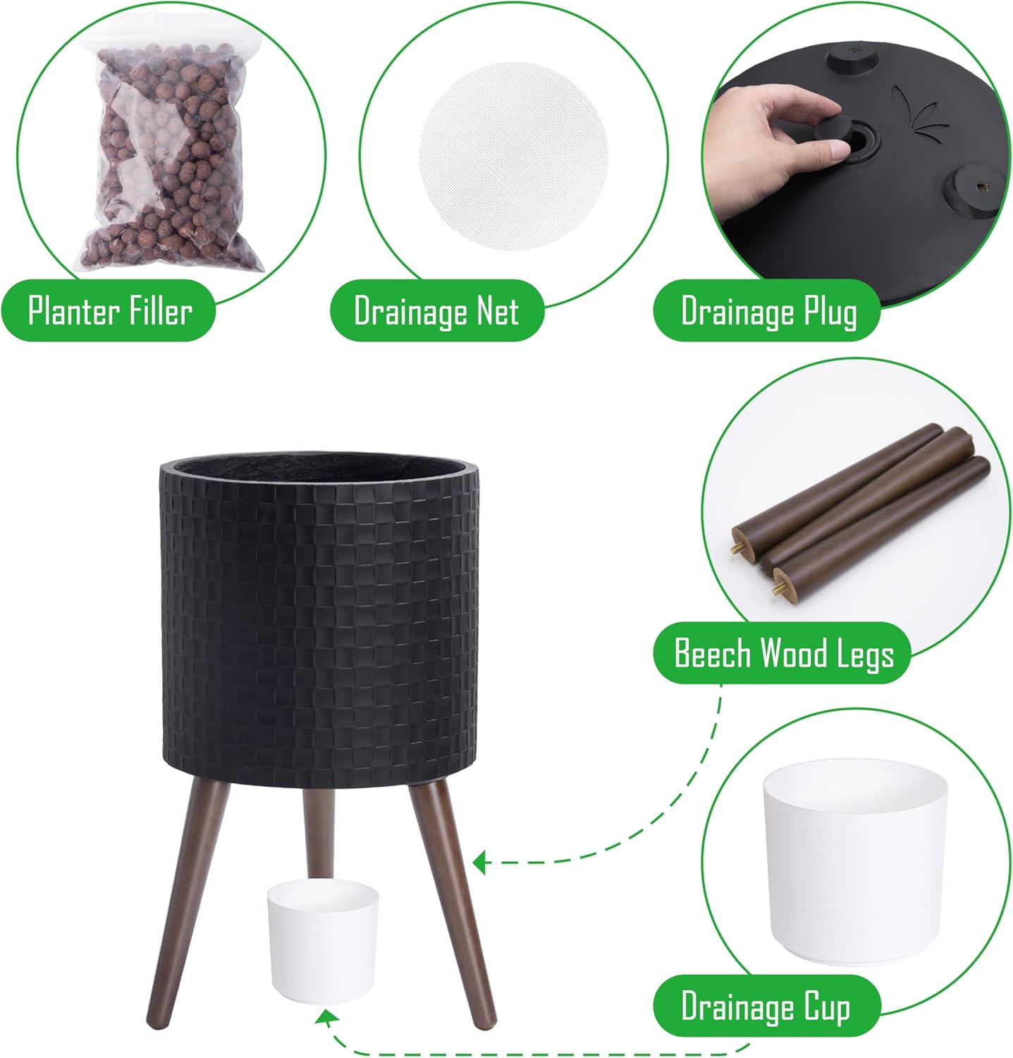 - Sturdy Wooden Legs: Supported by sleek wooden legs, this planter offers a stable base and enhances its overall aesthetic appeal.