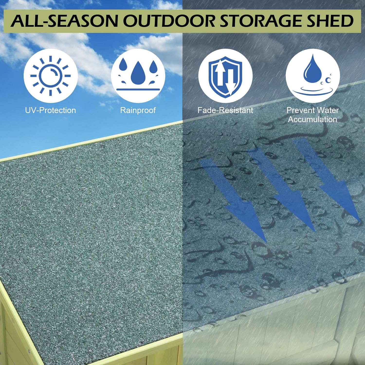 - WATERPROOF ASPHALT ROOF: The roof of garden tool closet is made of asphalt with waterproof coating to against bad weather. The sloping design allow rain to flow down quickly and avoids stagnant water, and don't worry about whether water will seep into the wood