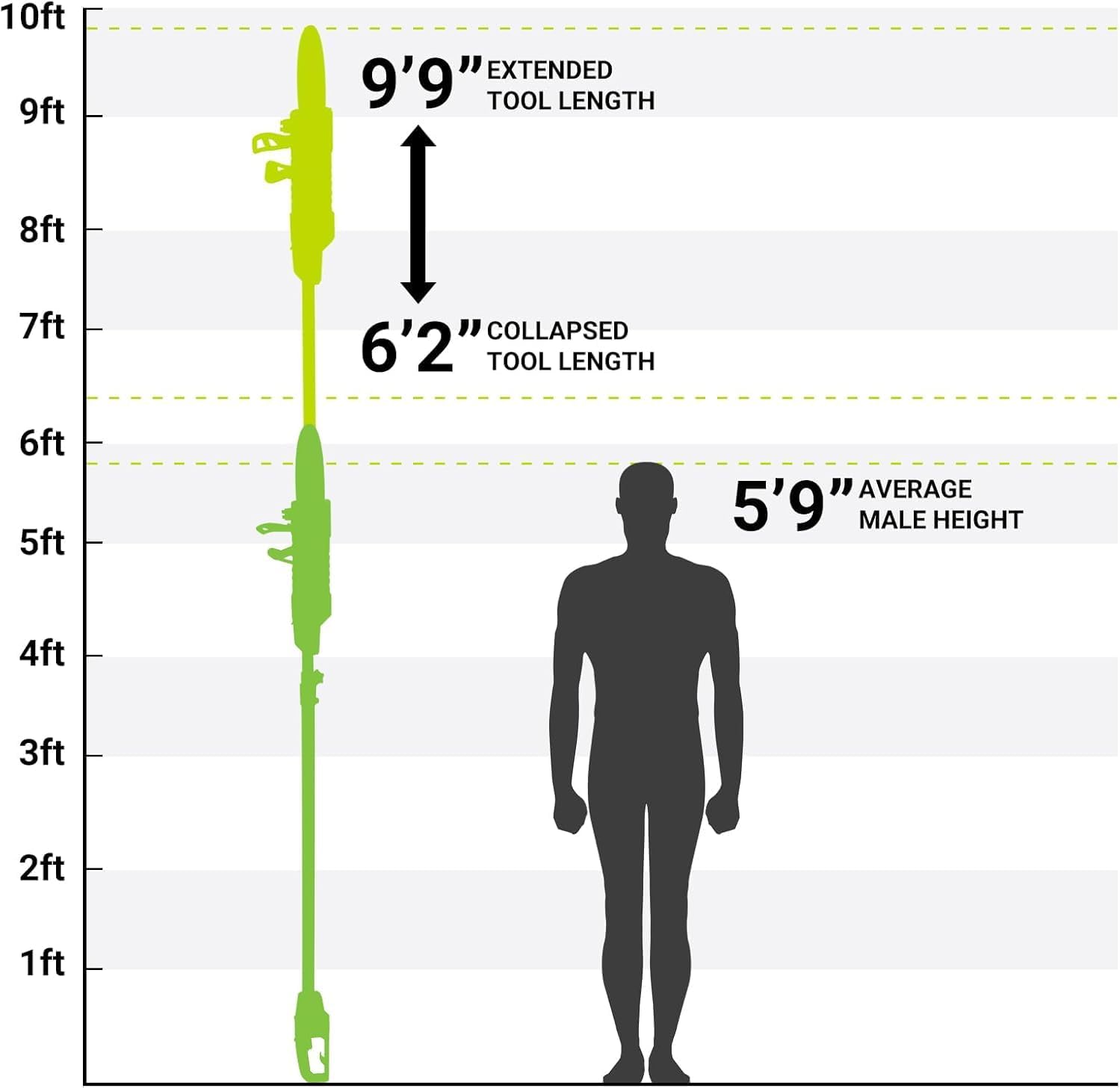 - QUICK TOOL-FREE ASSEMBLY: The extension pole attaches easily without tools, providing up to 10 feet of reach. This tree trimmer's extended reach allows you to easily trim high branches without needing a ladder.