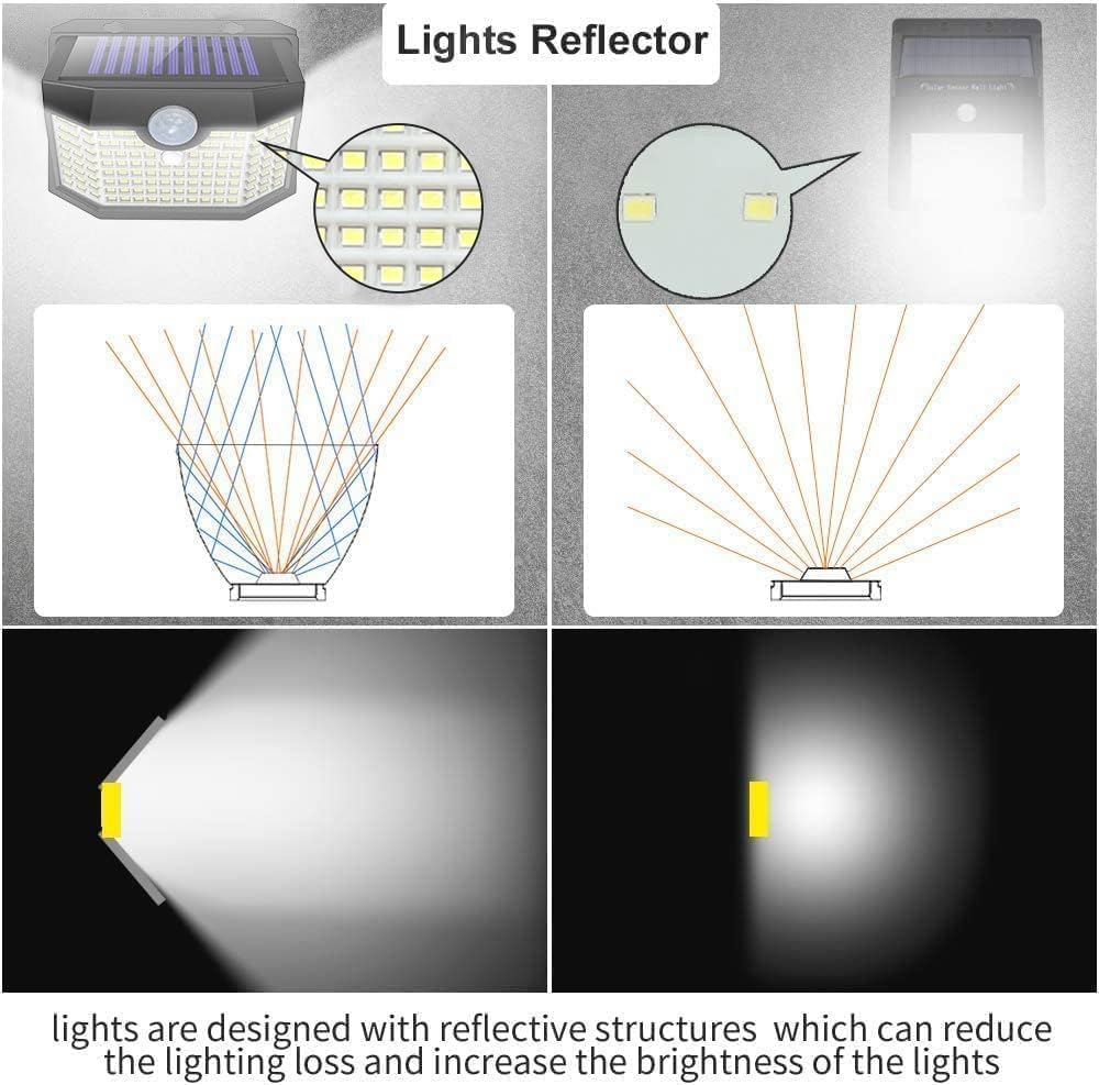HMCITY 120 LED Outdoor Solar Lights with Motion Sensor and 3 Lighting Modes, IP65 Waterproof Wide Solar Wall Lights Ideal for Garden Patio Yard (Front Button 2Packs, Daylight White)