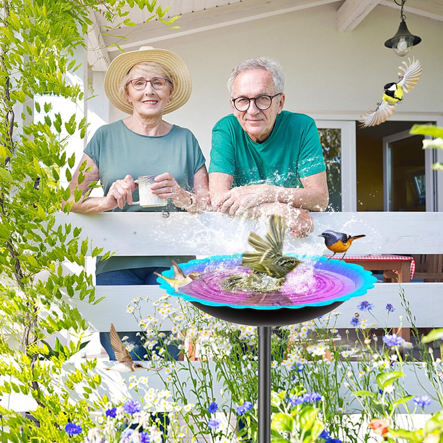 - 【Cute Garden Decor】:The outdoor bird water bowl can serve as a birdbath or birdfeeder, attracting lovely birds to bathe or dine in your backyard. Vibrant blue-purple colour very striking amongst the flowers and plants. It’s sure to become a striking focal point in your outdoor space