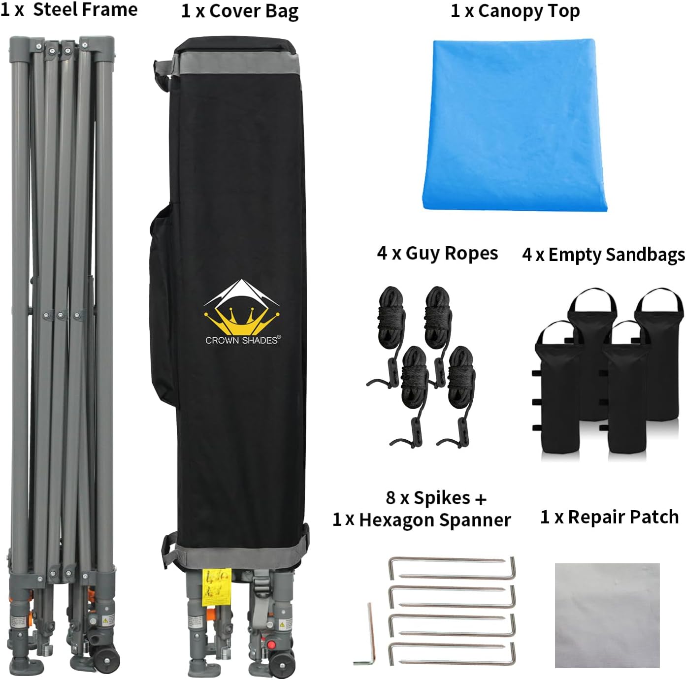 - OUR PROMISE - Experience our amazing customer service! We are here to support your canopy. We are available around the clock to help correct any problems or questions you might have with our Crown Shades products. Please note that our products are designed for daily use to protect from the sun and light rain. Please fully anchor your canopy to the ground to avoid damage
