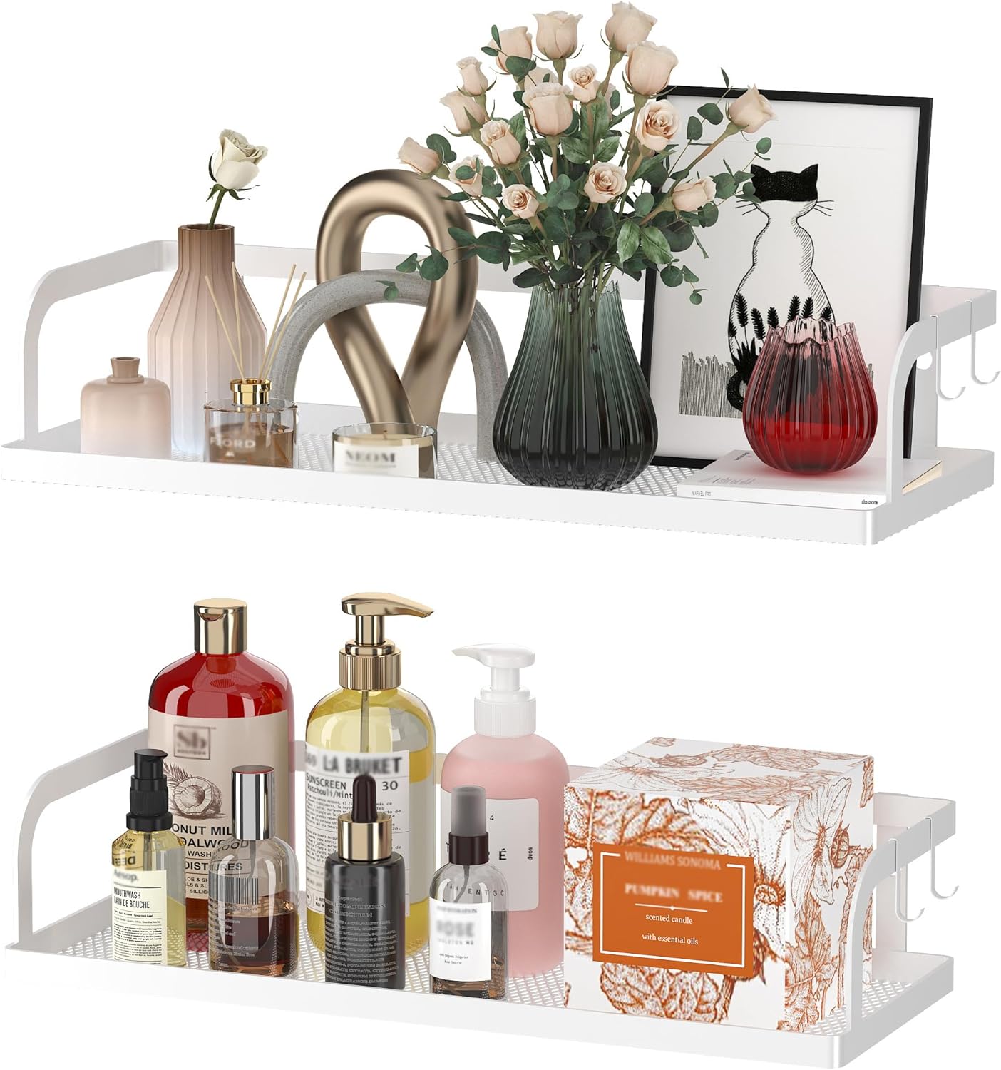 PUSDON Metal Wall Hanging Basket 2 Packs DIY Suitable for Multiple Scenes - White Hollowout 12.6in