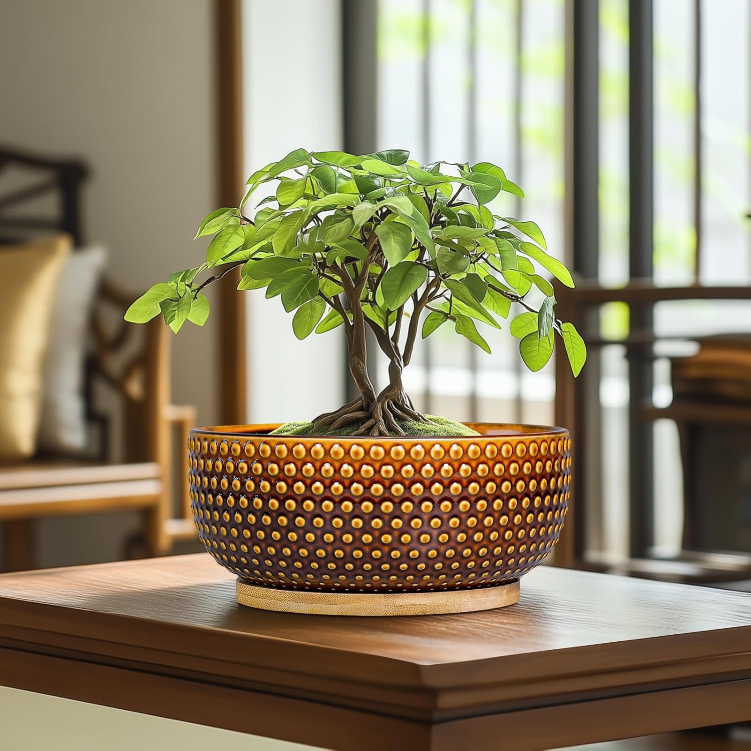 - Planter Design: This bonsai tree pot features a textural, raised dot design in a modern style, adds decorative appeal and a fashionable touch to indoor spaces, making it suitable for home decor and garden decor, bringing a relaxing and pleasant experience(NOT INCLUDE PLANT)