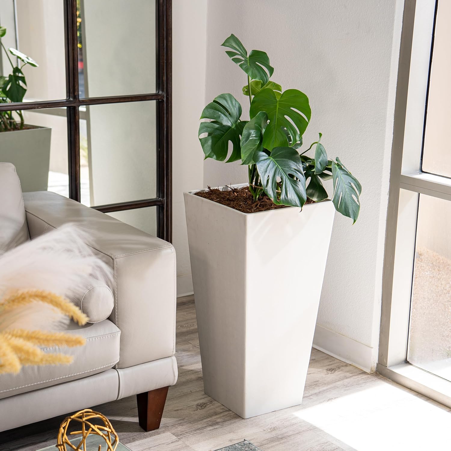 - LARGE AND VERSATILE: The large size of these tapered square planters (measuring 15.2 in. x 15.2 in. wide and 30 in. tall and weight of 20.4 pounds, each), makes this set of two same sized planters ideal for accommodating bigger plants and adding a bold and impressive presence to your indoor or outdoor space.