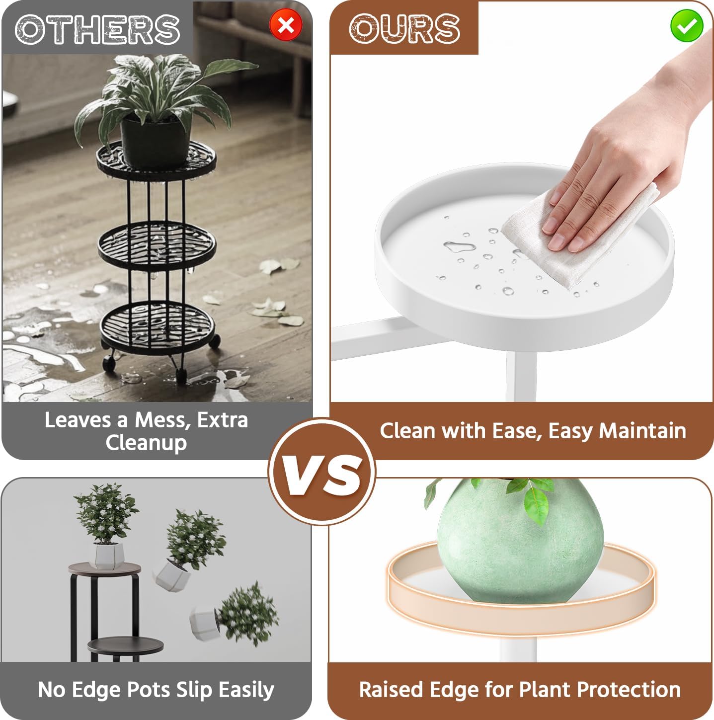 - 【 Keep Floors Dry with Edge Trays】Say goodbye to water stains on your floor! Our indoor plant stands for multiple plants come with edge trays that catch any overflow, keeping your plants safe and your floor nice and dry. No more worrying about water damage when caring for your indoor plants!
