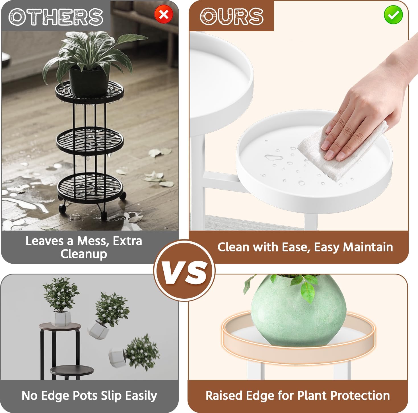 - 【 Keep Floors Dry with Edge Trays】Say goodbye to water stains on your floor! The metal plant stands indoor come with edge trays that catch any overflow, keeping your plants safe and your floor nice and dry. No more worrying about water damage when caring for your indoor plants!