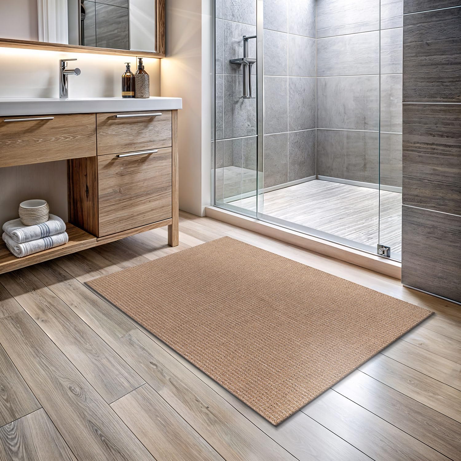 - PREMIUM QUALITY: Made for durability and elegance, this 2x3 rug in Natural mimics authentic jute with a soft, non-irritating feel. A refined choice that balances texture, comfort, and quality for homes that value lasting, eco-friendly aesthetics.