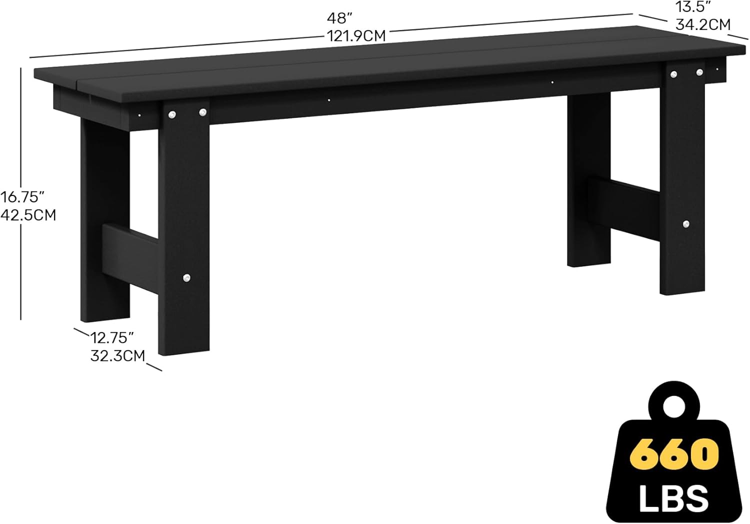 Garden Bench, Front Porch Bench Entryway Park Bench, Patio Backless Garden Seat for Outdoors/Indoor, Low Farmhouse Bench, Black