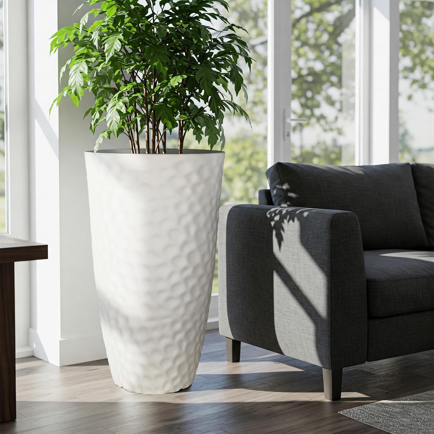 - Modern Minimalist Style: Designed with a subtle hammered texture and a clean matte white finish, these planters add a modern, minimalist vibe to any indoor or outdoor space