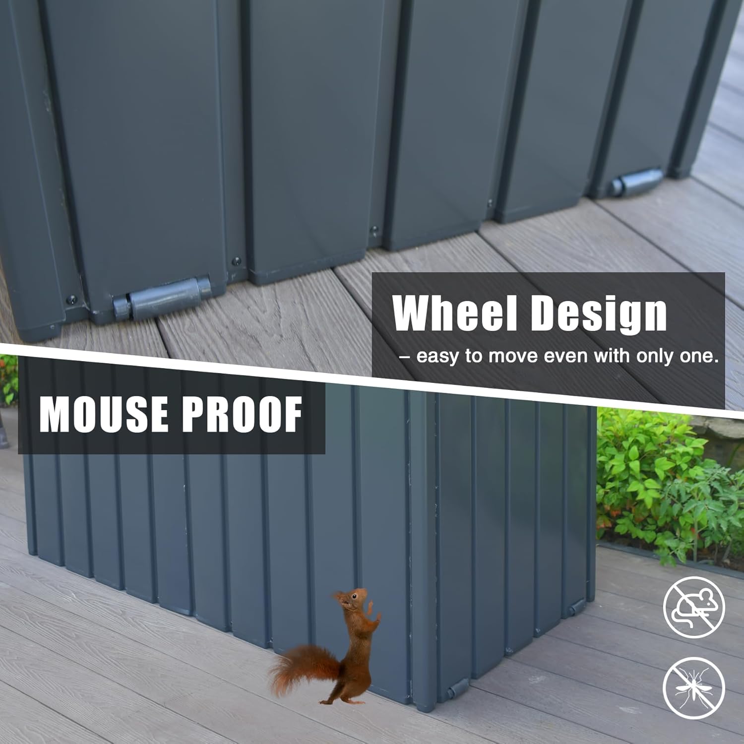 - 🌞【Water Proof & Mouse Proof】: This patio storage box is designed to close hermetically with sturdy construction that can keep out mice and squirrels. The surface is waterproof, no worry about rain or water will erode the storage box.