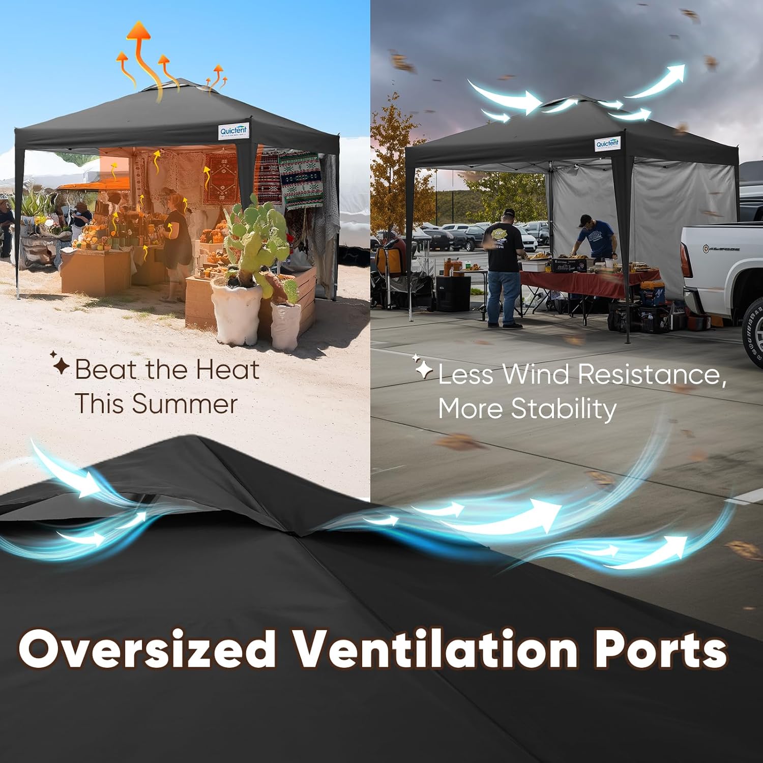 - ๐๐๐ง๐ญ๐๐ ๐๐จ๐ฉ ๐๐๐ฌ๐ข๐ ๐ง: Our 10x10 pop-up canopy with 1 sidewall features a vented roof design for improved air circulation and enhanced stability in windy conditions, keeping you cool and secure.