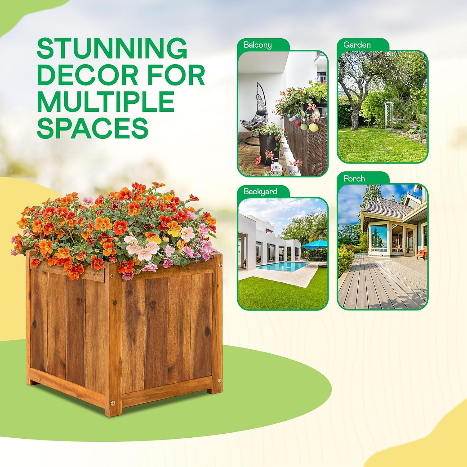 - HIGH-QUALITY ACACIA WOOD CONSTRUCTION: This herb garden planter outdoor is made from durable Acacia wood; Its natural wood grain adds a touch of nature to your living space, ideal for growing plants