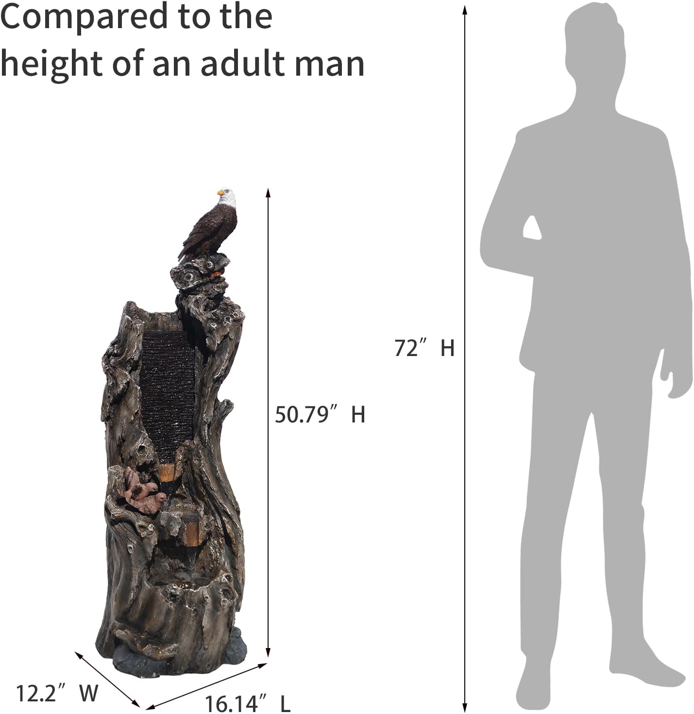 YZM 50.79" H Outdoor Rainforest Waterfall Tree Trunk Fountain with Bald Eagle Outdoor Cascading Water Feature for Garden Patio Backyard Landscape Décor 3-Tier Water Fountains
