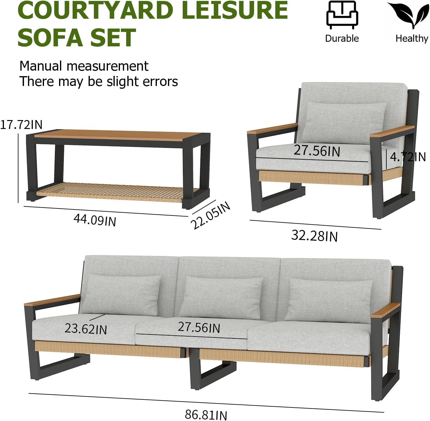 - Sleek Modern Design: With its minimalist style, this set complements any outdoor decor, adding a contemporary touch to your space.