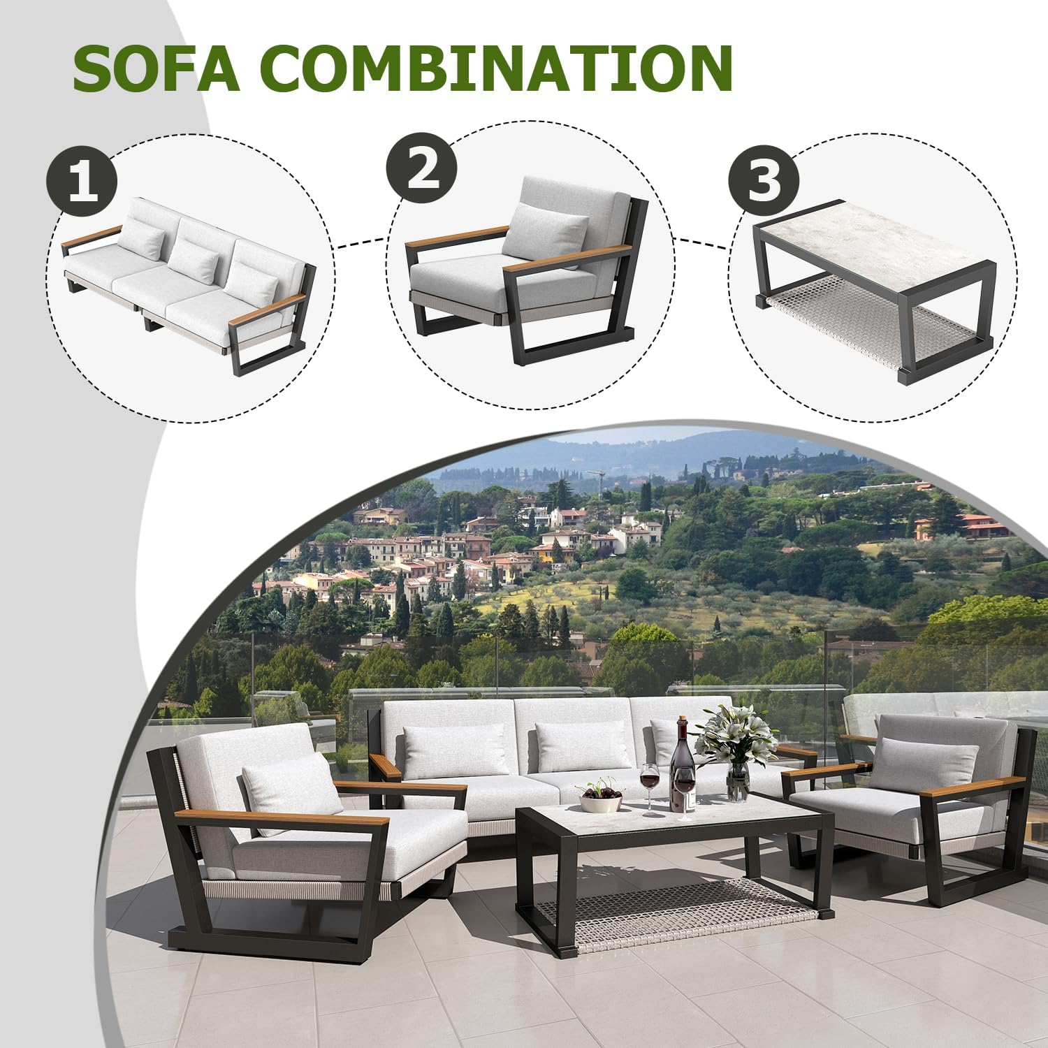 - Weather-Resistant & Durable: Crafted with polypropylene fiber and high-density PE webbing, this Aluminum Patio Furniture Set resists UV rays, water, and tears. The sturdy woven design supports up to 500lbs, ensuring long-lasting performance in any outdoor environment.
