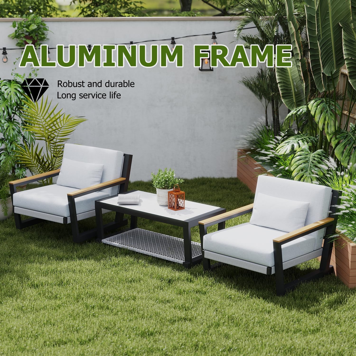 - Rust-Proof Aluminum Frame: The lightweight, powder-coated frame is UV and rust-resistant, making this Patio Conversation Sets durable and easy to move. Perfect for patios, gardens, or poolside use.