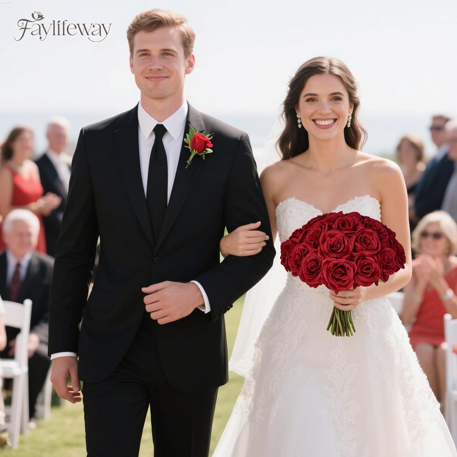 - Premium Material: Fake red roses is made of soft silk and pliable PVC stems with flexible wires in the stems, easily adjustable and long-lasting