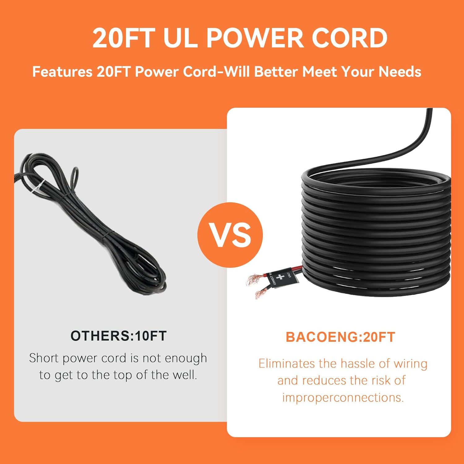 BACOENG DC 12V Solar Water Pump, Submersible Well Pump 20FT, 20GPM Lift for Farm & Ranch