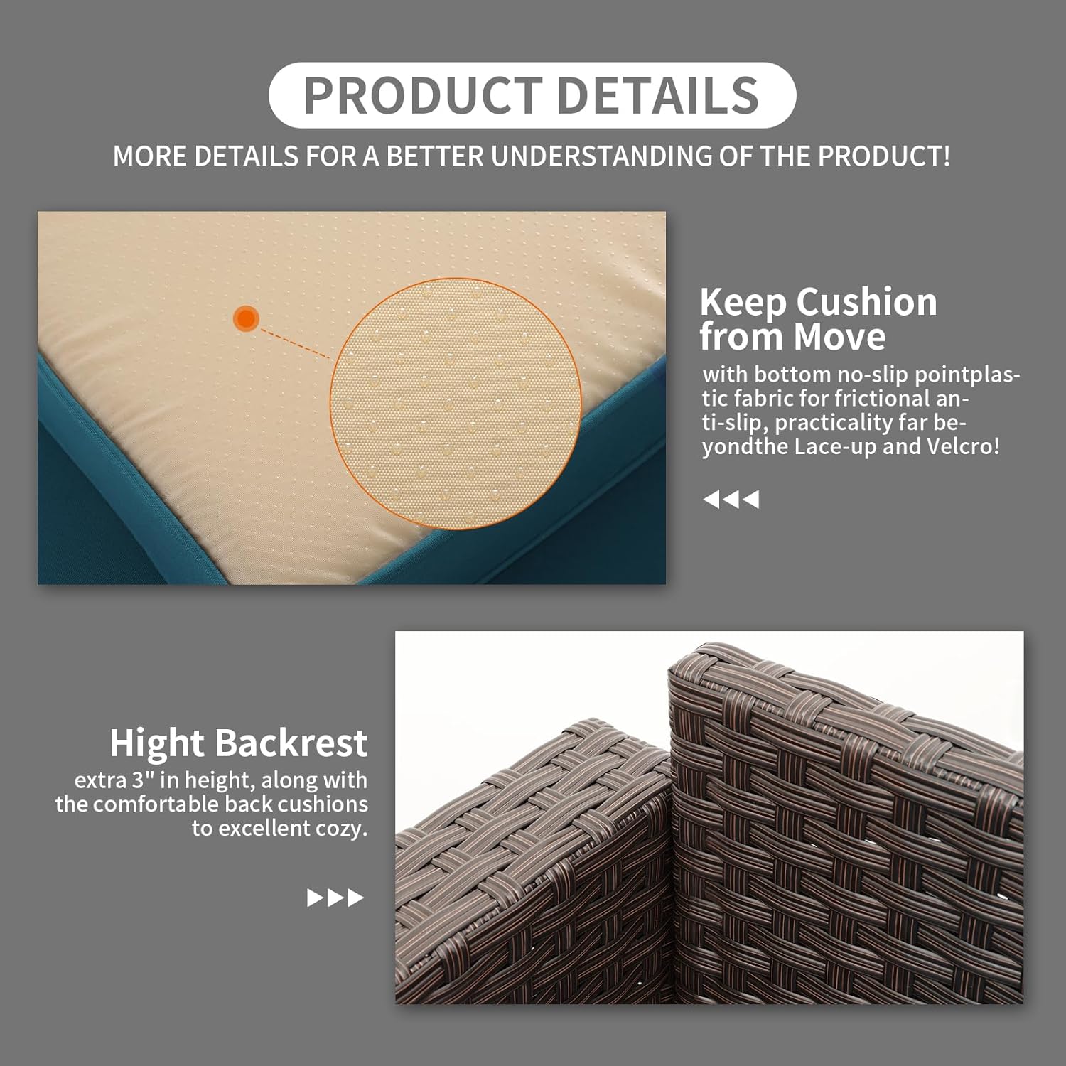 - Comfortable & Non-slip: Thickened seat cushions(4") with high resilience sponge and bottom anti-slip dotted plastic fabric, anti-slip and practicality are wholly better than lacing, velcro or hook, match up filling back cushions, which is extraordinarily comfortable and everlasting. Plus, lumbar pillows are free and style randomly.