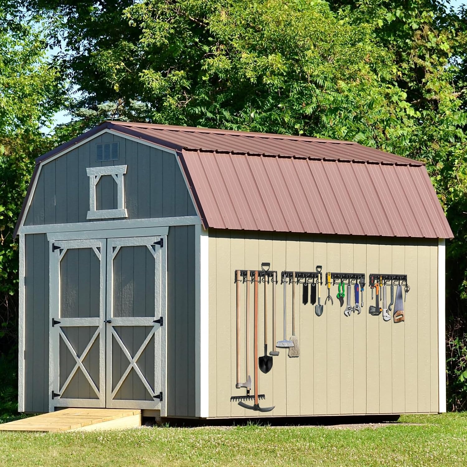 - VERSATILE FOR MULTIPLE USES: This all-in-one garden tool holder wall mount is perfect for organizing everything from mops and brooms to shovels, axes, sleds, and even bicycles. Whether you're outfitting a garage, yard, garden shed, utility room, or workshop, this system turns any wall into efficient garden tool storage. It’s an excellent choice for those looking for a reliable yard tool organizer for garage or an upgrade to their storage space.