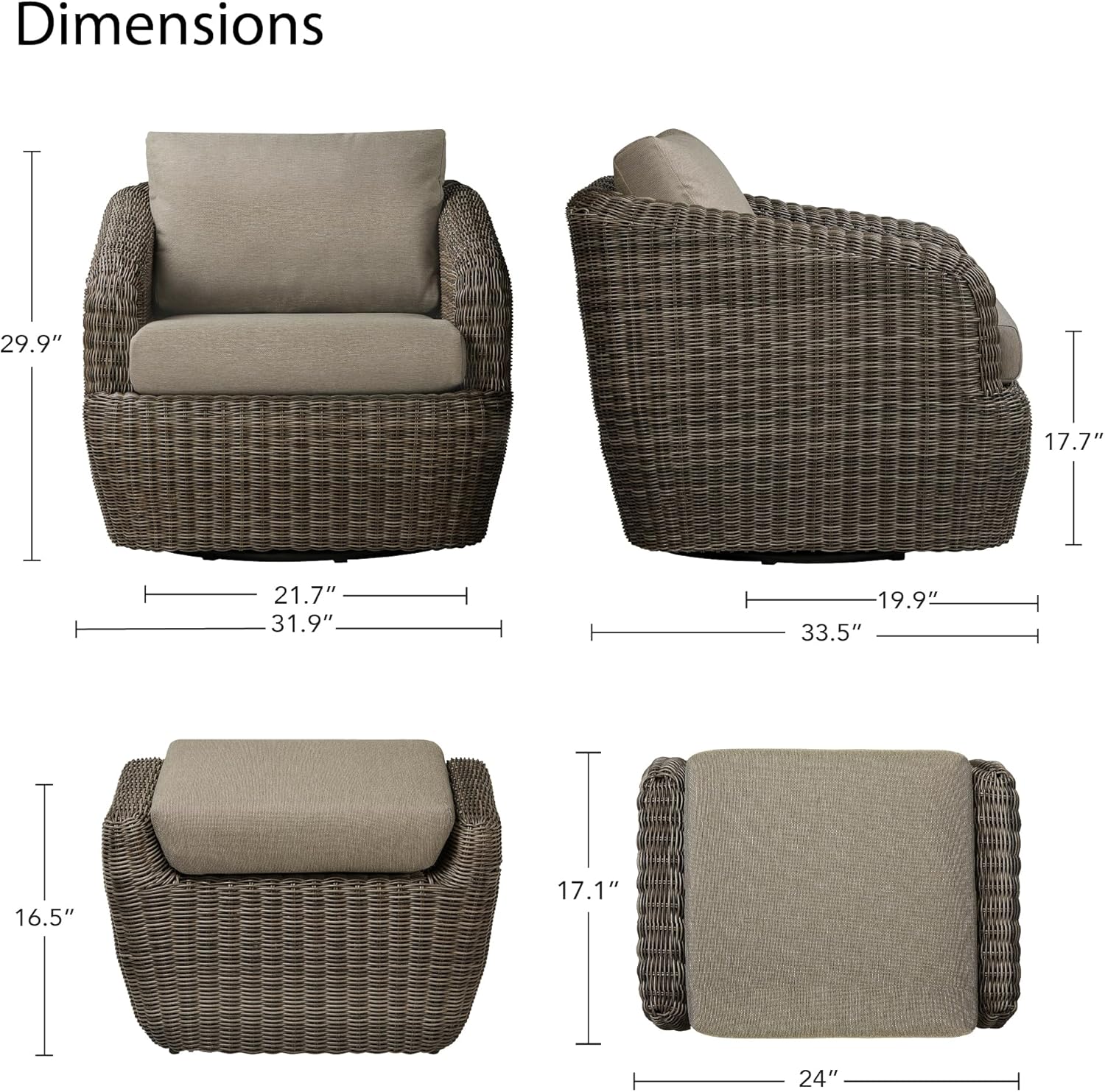 - Fully Assembled & Convenient - This swivel chair and ottoman arrives fully assembled, ready to be placed in your outdoor space hassle-free. Note: The productโs color may vary under different lighting conditions. For accurate color representation, always refer to the actual product.