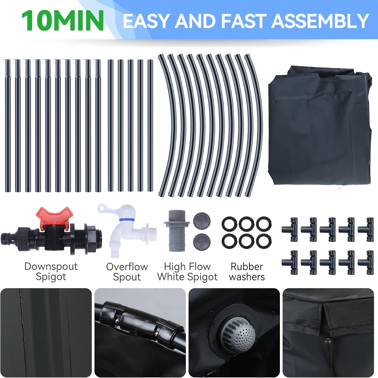 - Complete Kit: Includes spigot for easy water dispensing and overflow kit to manage excess water during heavy rainfall