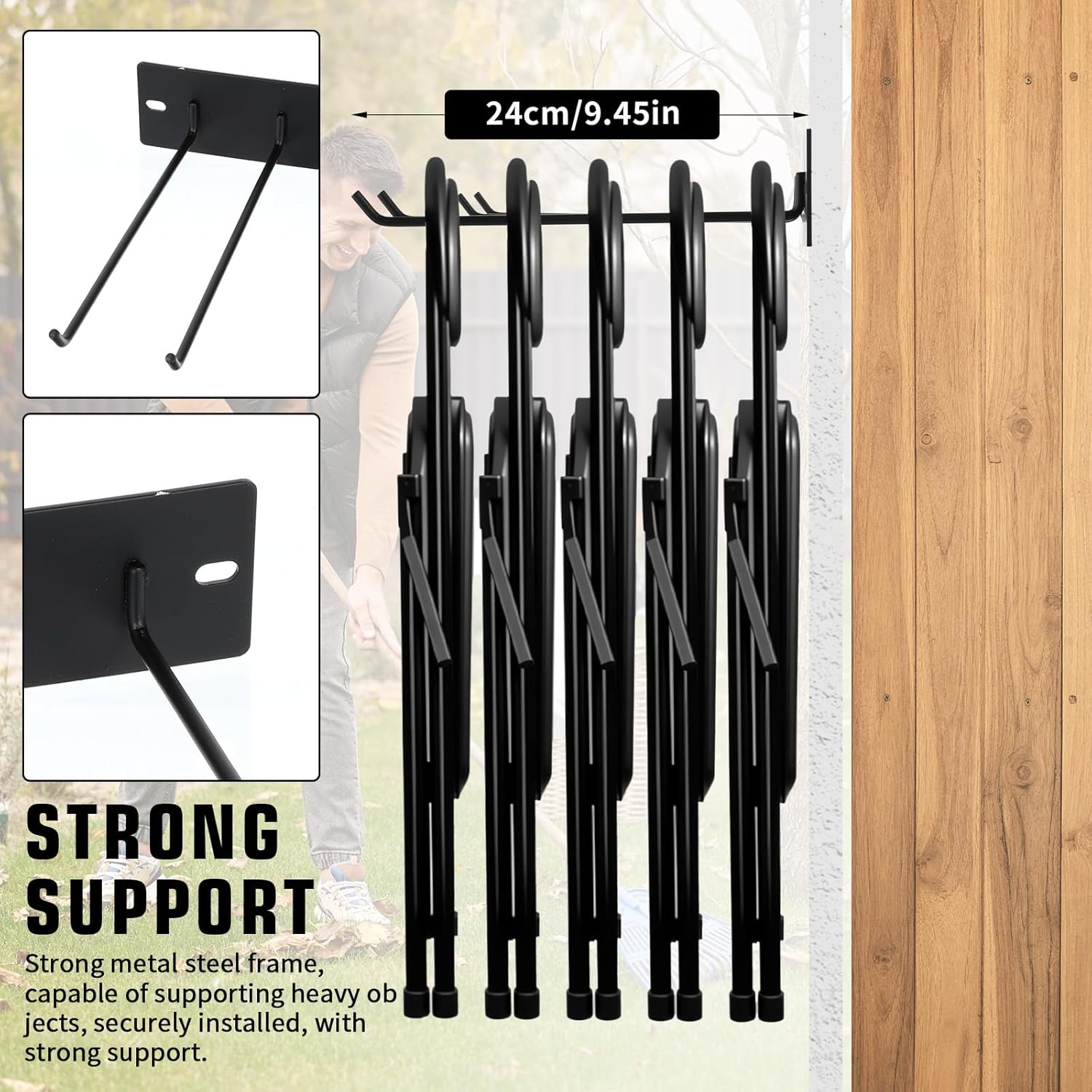 - Versatile Chair Storage Solution:Streamline your space with our Folding Chair Storage Rack, perfect for organizing chairs, garage wall-mounted storage, and garden tool organization.