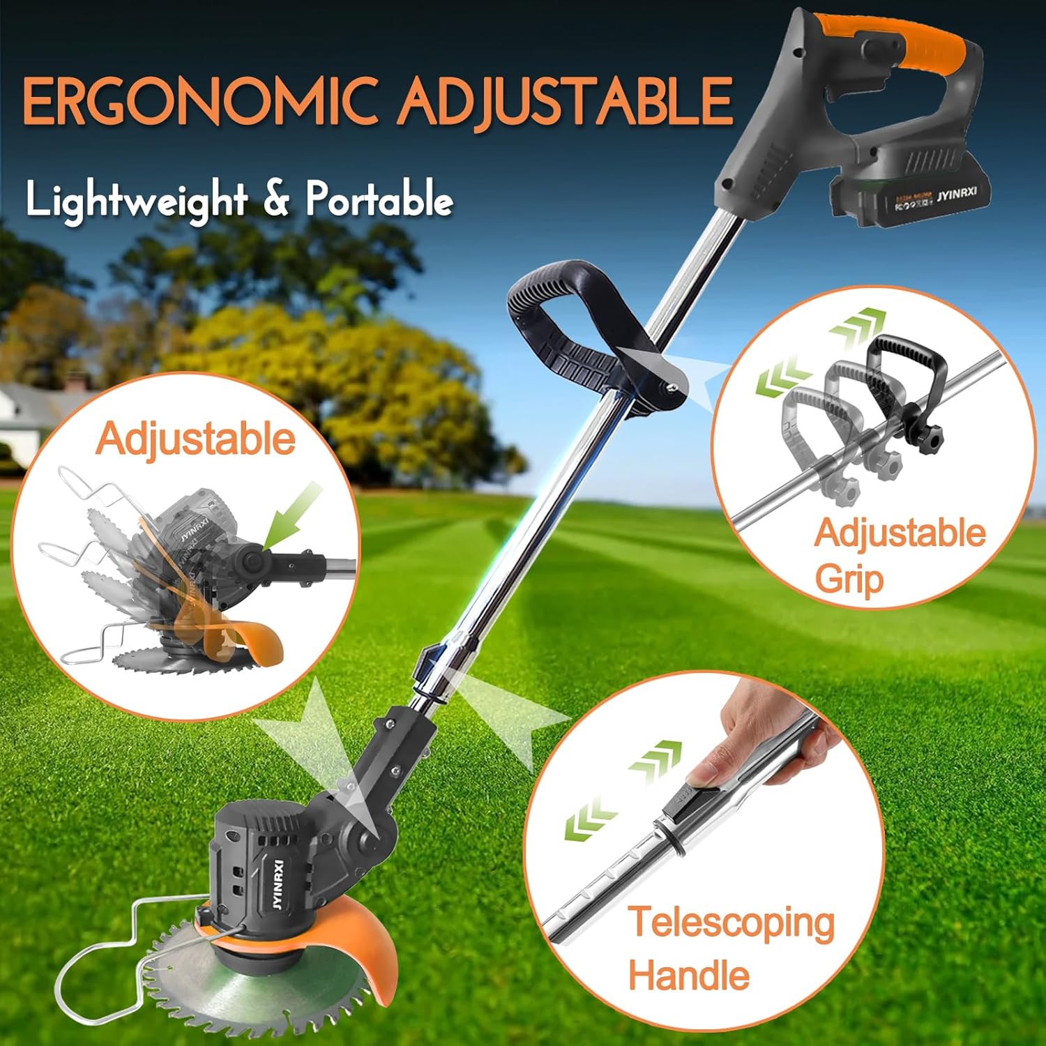 - Lightweight and comfortable design:Our lightweight weed wacker weighs only 3.2 pounds, Whether it's women or elderly people, it can all be easily used. Battery weed wacker with charger with Ergonomic trimming handle without bending over. Work in the most comfortable position, greatly reducing the stress on the back and waist. Enjoy fast and efficient pruning, easily maintain the cleanliness and tidiness of gardens and courtyards.