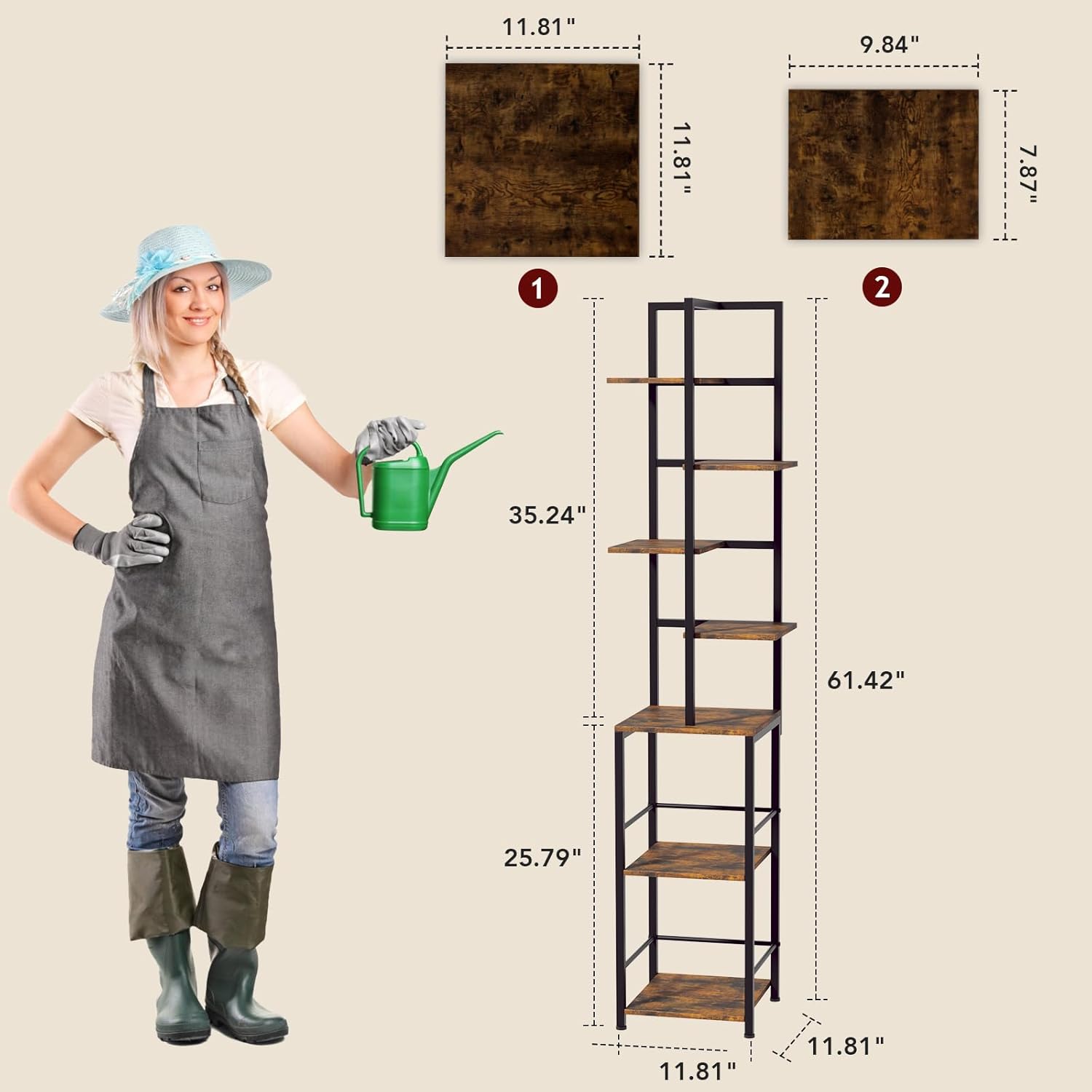 - [Space-Saving Corner Design] Maximize space with this 7-tier corner plant stand, perfect for indoor plant stand or plant shelf.The assembly size is: 11.81L*11.81W*61.42H in