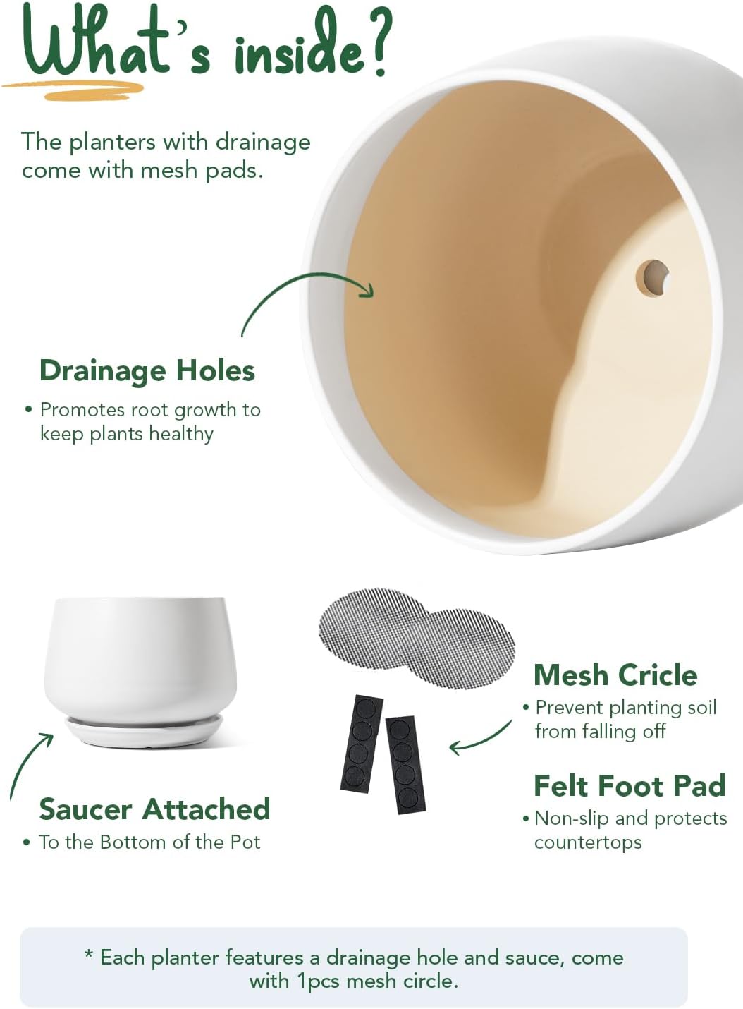 - Special Feature : Drainage Hole and saucer, Durable Ceramic, Easy to Clean, Safe Packaging, Weather Resistant