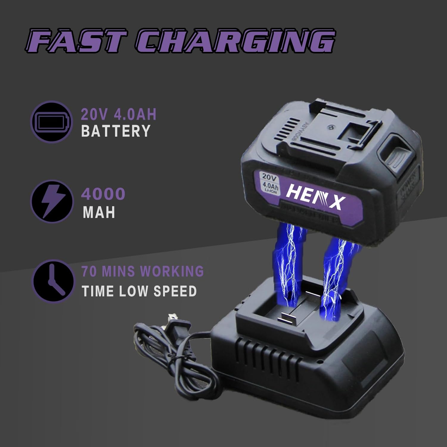 - ăThe Great Gift ChoiceăThis complete HENX 20volt leaf blower set comes ready-to-gift in sustainable recycled packaging, including the powerful leaf blower body, 2 extension tubes, one 20V lasting 4.0Ah batteries with fast charger, and full manual - making it an ideal present for homeowners that combines premium yard care functionality with environmental responsibility, perfect for thoughtful surprises while demonstrating your commitment to both quality and sustainability.