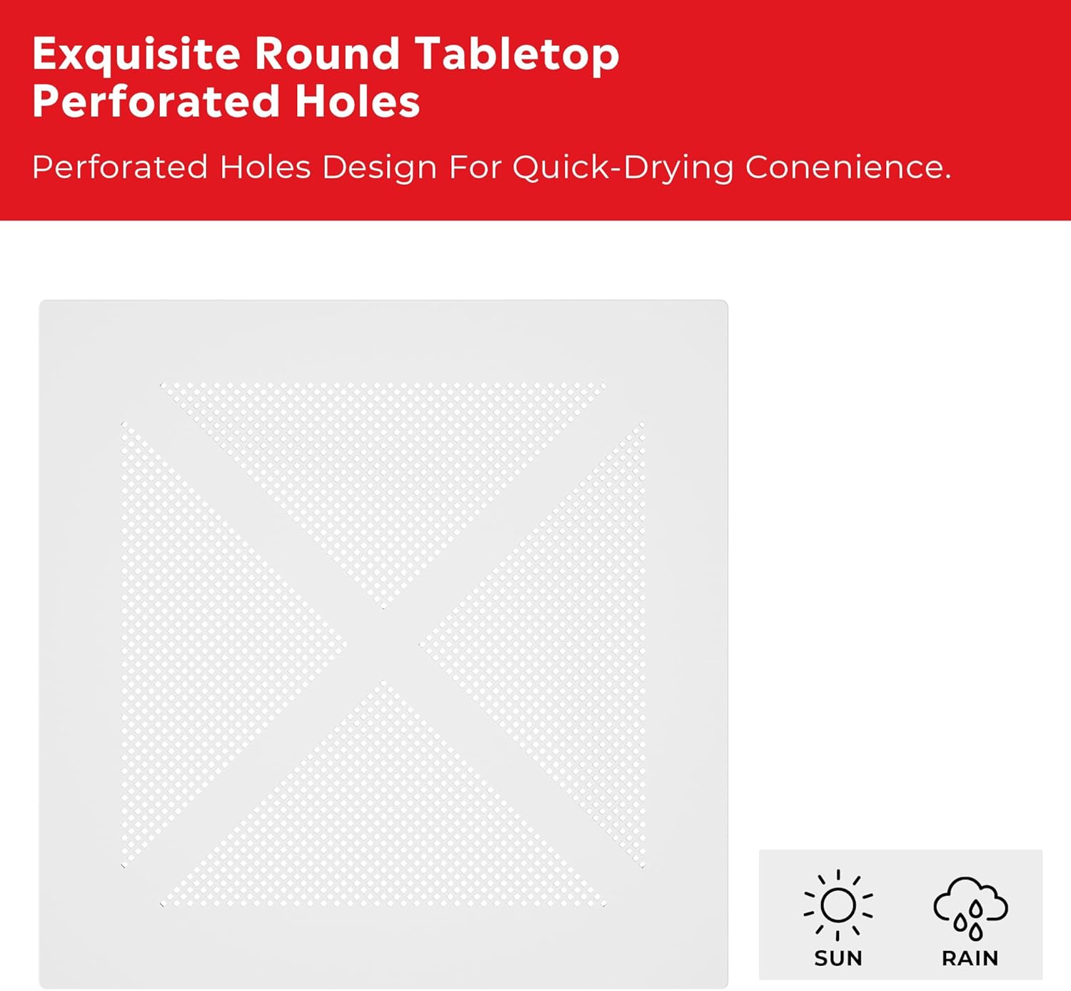 - Table Equipped with Adjustable Foot Levelers to Help Prevent Wobbling on Uneven Surfaces and Ventilated Tabletop to Allow for Water to Drain and Allow for Faster Drying with the Improved Airflow and Simple to Assemble with 3 Simple Steps