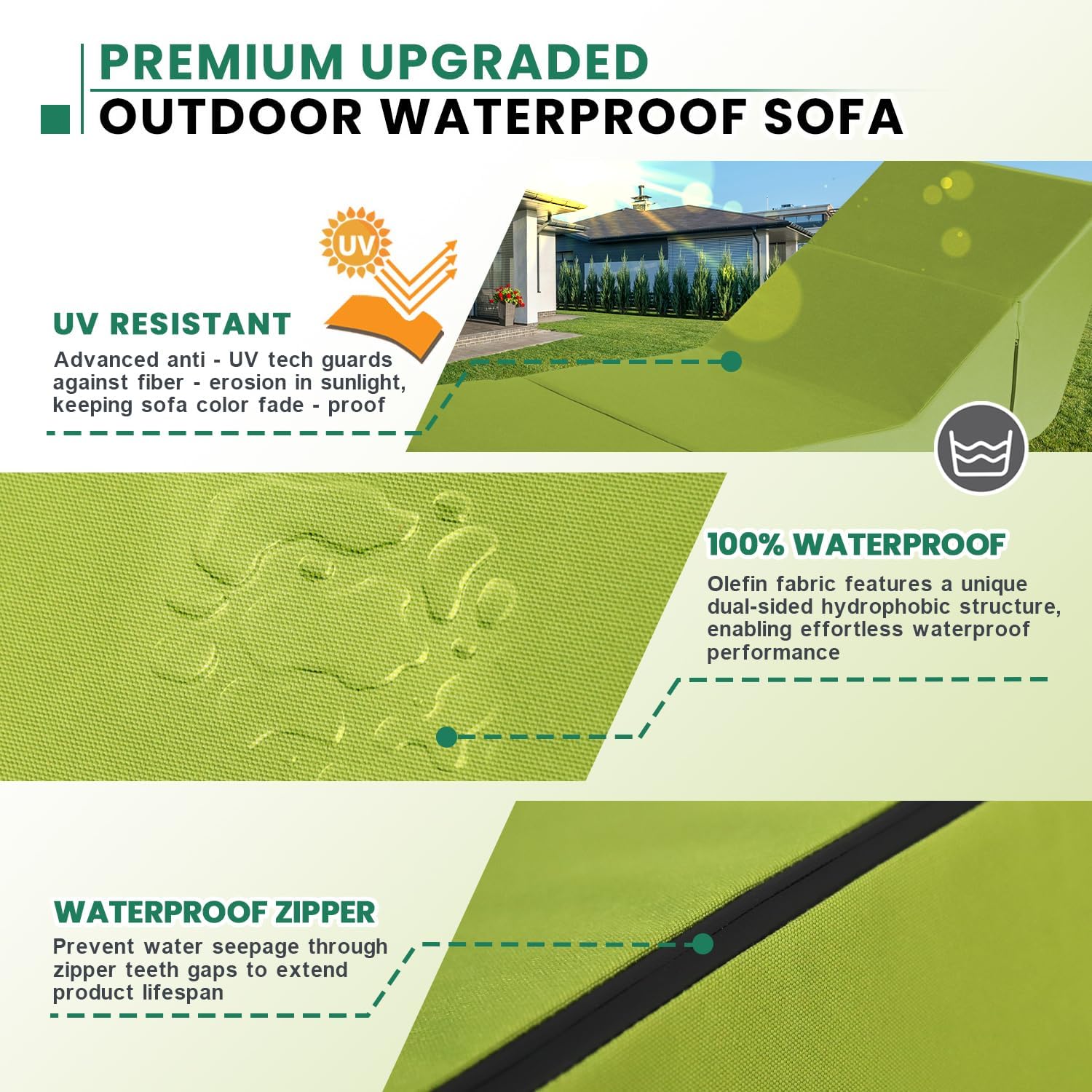 - Waterproof & Stain-Proof Olefin Fabric:Our lounge chair outdoor, crafted from durable Olefin Fabric with a unique double - sided hydrophobic structure, excel in waterproofing and stain resistance. Stains wipe away effortlessly, restoring the chairs' fresh look. This patio furniture repel heavy rain without a trace, dry twice as fast as regular outdoor fabrics, and resist UV fading, ensuring lasting beauty for all your outdoor relaxation needs.