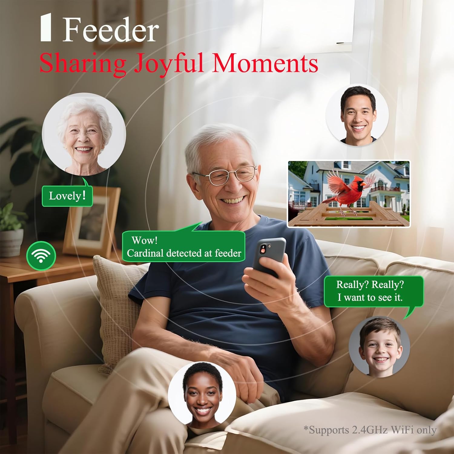 - 📱【Receive Bird Arrival Notifications】-Are you still using traditional bird feeders? The GESENWIN bird camera can automatically capture incoming birds (such as Blue Jays, Northern Cardinals, Hummingbirds, etc.), record videos of birds entering the detection area, and your phone can receive instant notifications and HD snapshots. The GESENWIN birdwatching camera allows you to take close-up shots of distinctive bird species, providing the best experience for your birdwatching journey.