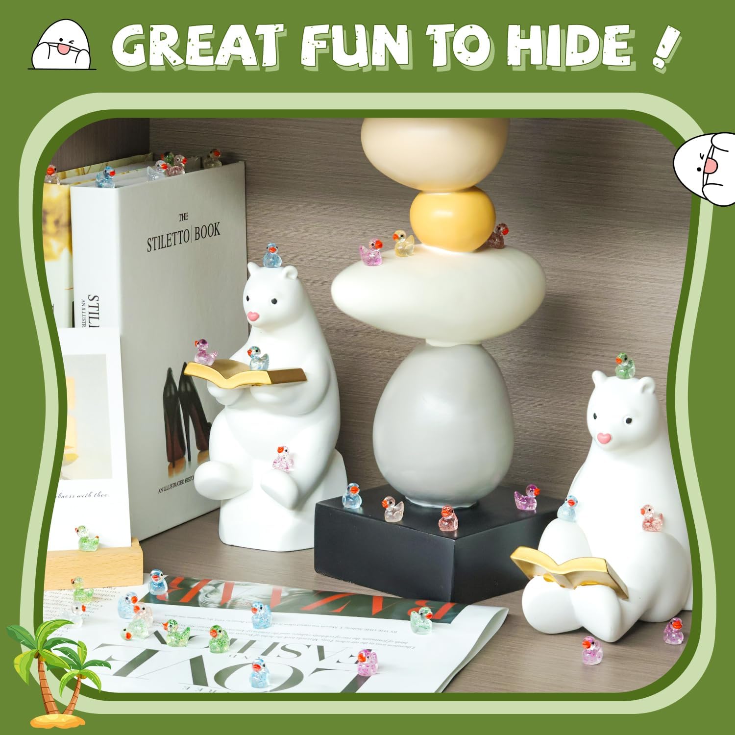 - PACKAGE CONTENT -- One Package includes 120 pcs colorful giltter mini ducks, each tiny figure is crafted with intricate details and vibrant colors, making them cute and eye-catching.Use them to add charm for crafting, or having hide games to enhance fun