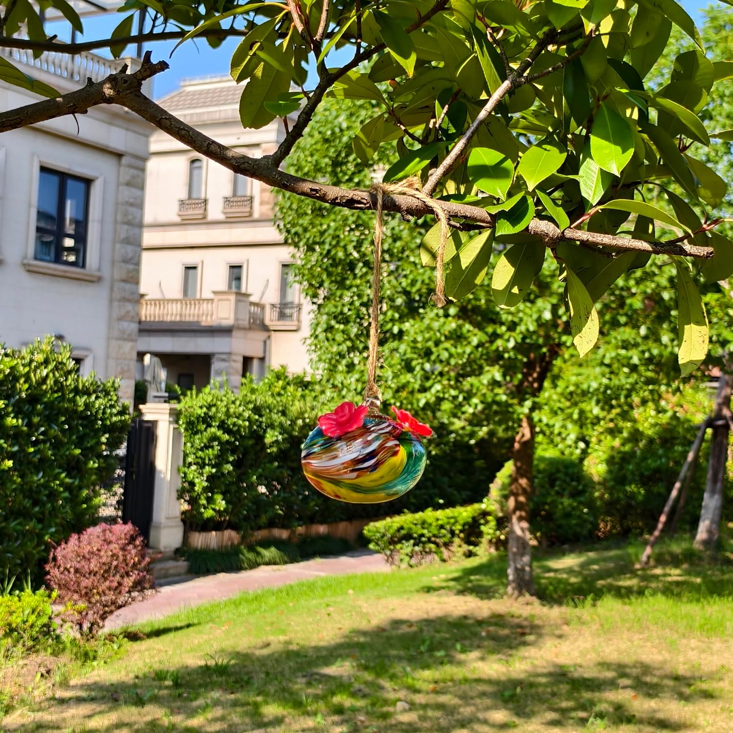 Small Glass Hummingbird Feeders for Outdoors Hanging - Hand Blown Glass Ball Nectar Feeding, Multi Color with 3 Flowers Feeding Ports, Decor for Garden/Backyard Outside