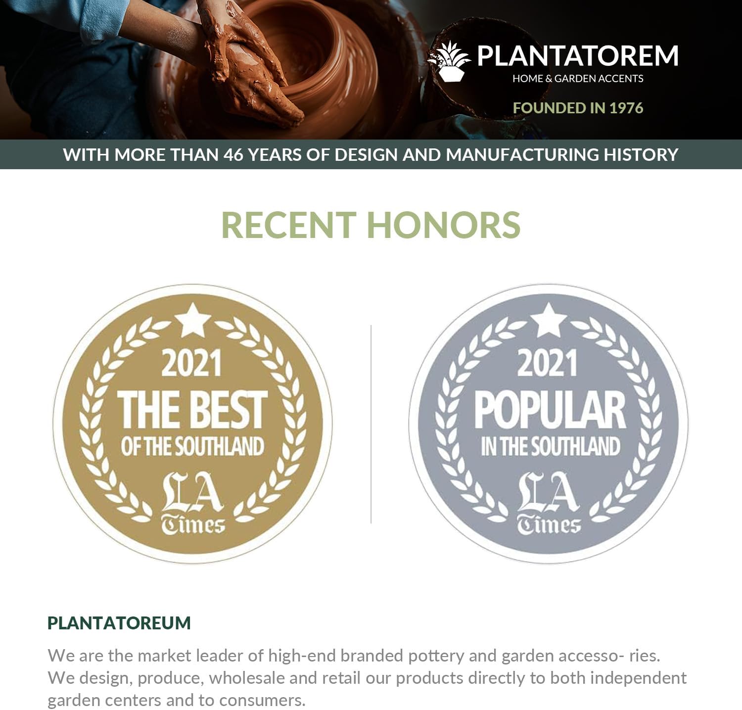 - 【Brand History】Founded in 1976, with more than 46 years of design and manufacturing history,Tropian Inc is a large-scale comprehensive ceramic enterprise dedicated to R&D, production, design and sales,Focus on using modern pottery design to create high-quality flower pots to add a little beauty and vitality to your life. The love and passion of our customers inspired us to establish PLANTATOREM also as an online brand to distribute our exquisite lines of pottery to container gardening enthusiasts