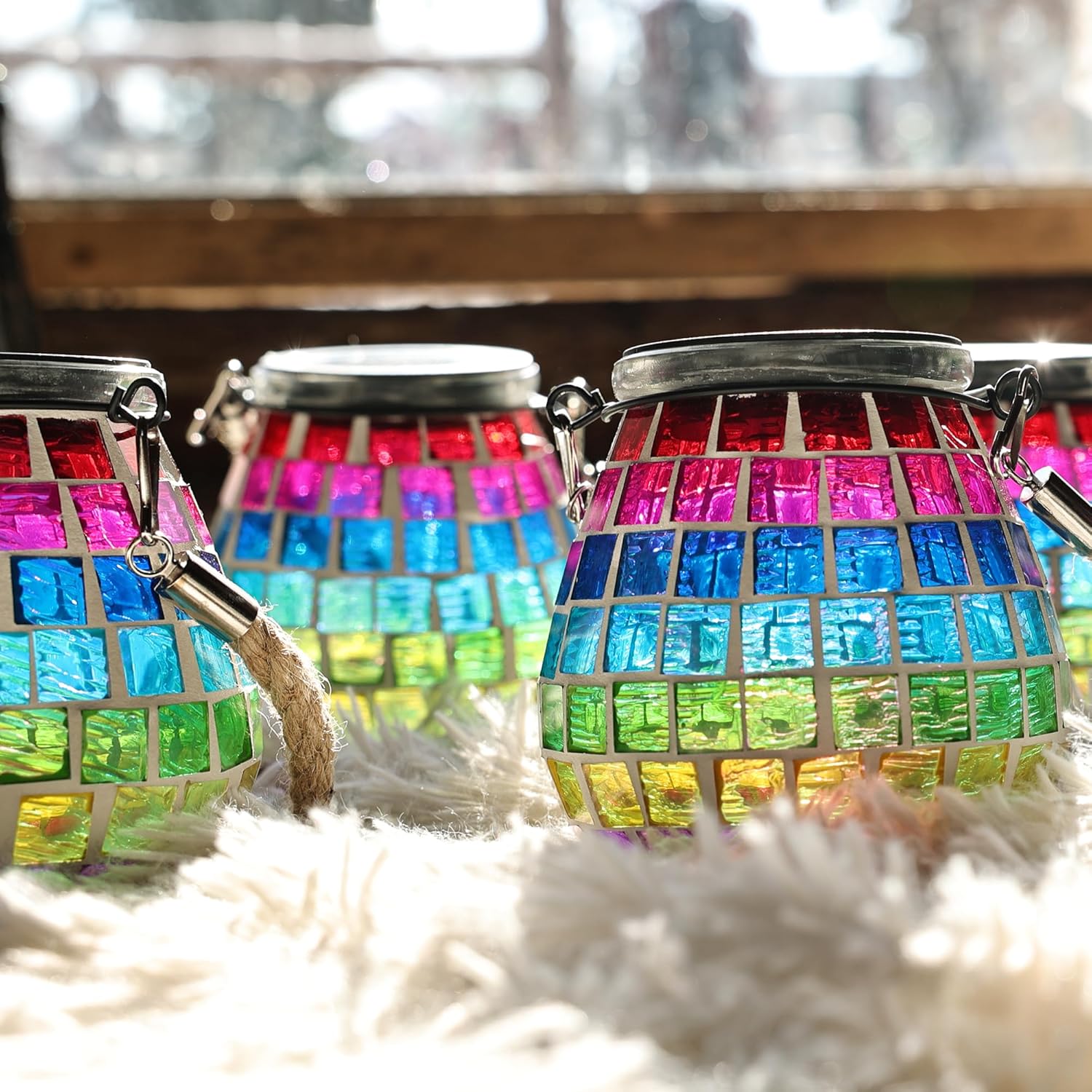 Cooo 2 Pack Mosaic Solar Lantern Outdoor Waterproof IP68 Hanging Projection Light Hidden Lid Pear-Shaped Lantern with Rope Handle Solar Powered Auto On for Patio Garden Fence Table - Neon Mosaic