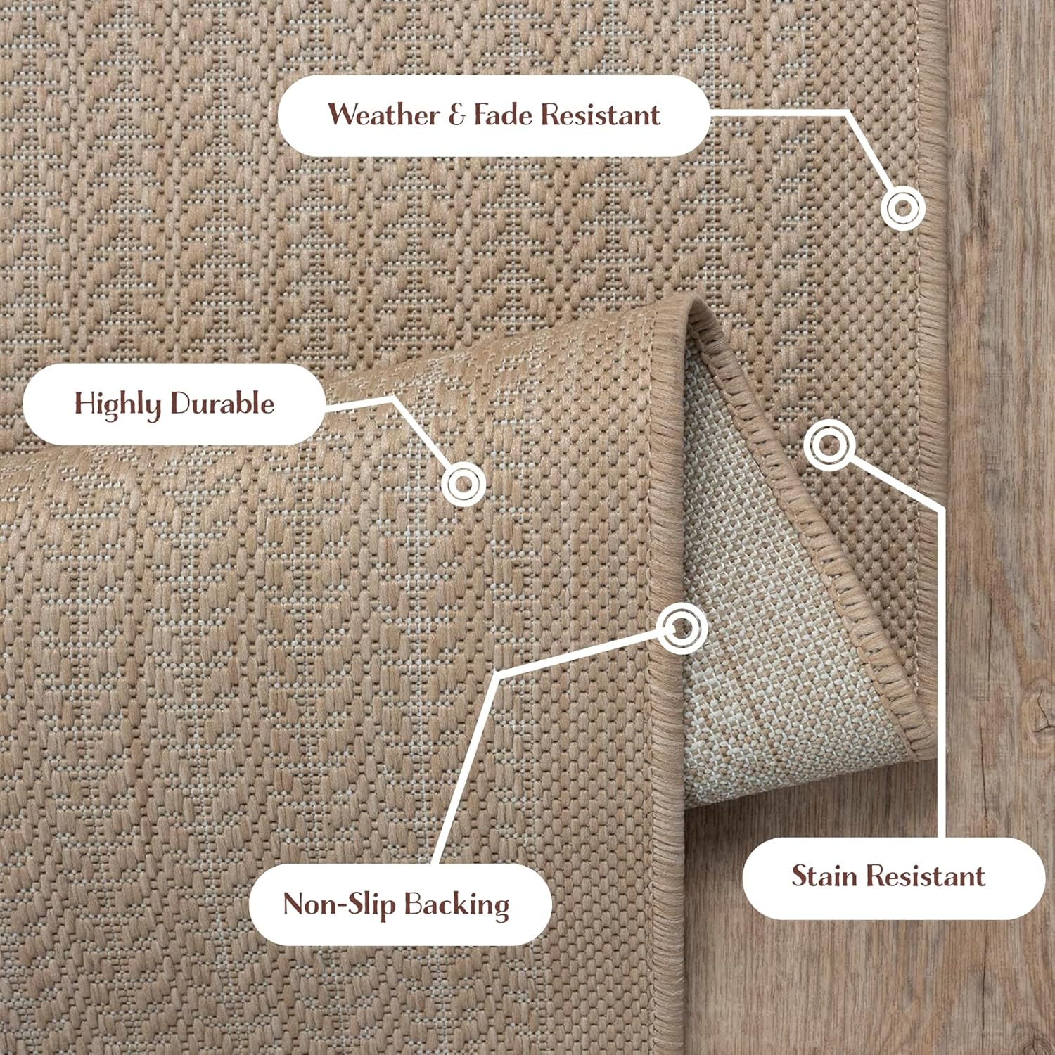 Adiva Rugs Outdoor Indoor Area Rug, Weather Resistant, Easy to Clean, Stain Resistant Floor Mat for Dining Room, Backyard, Deck, Patio (Natural Beige, 2'6" x 7')