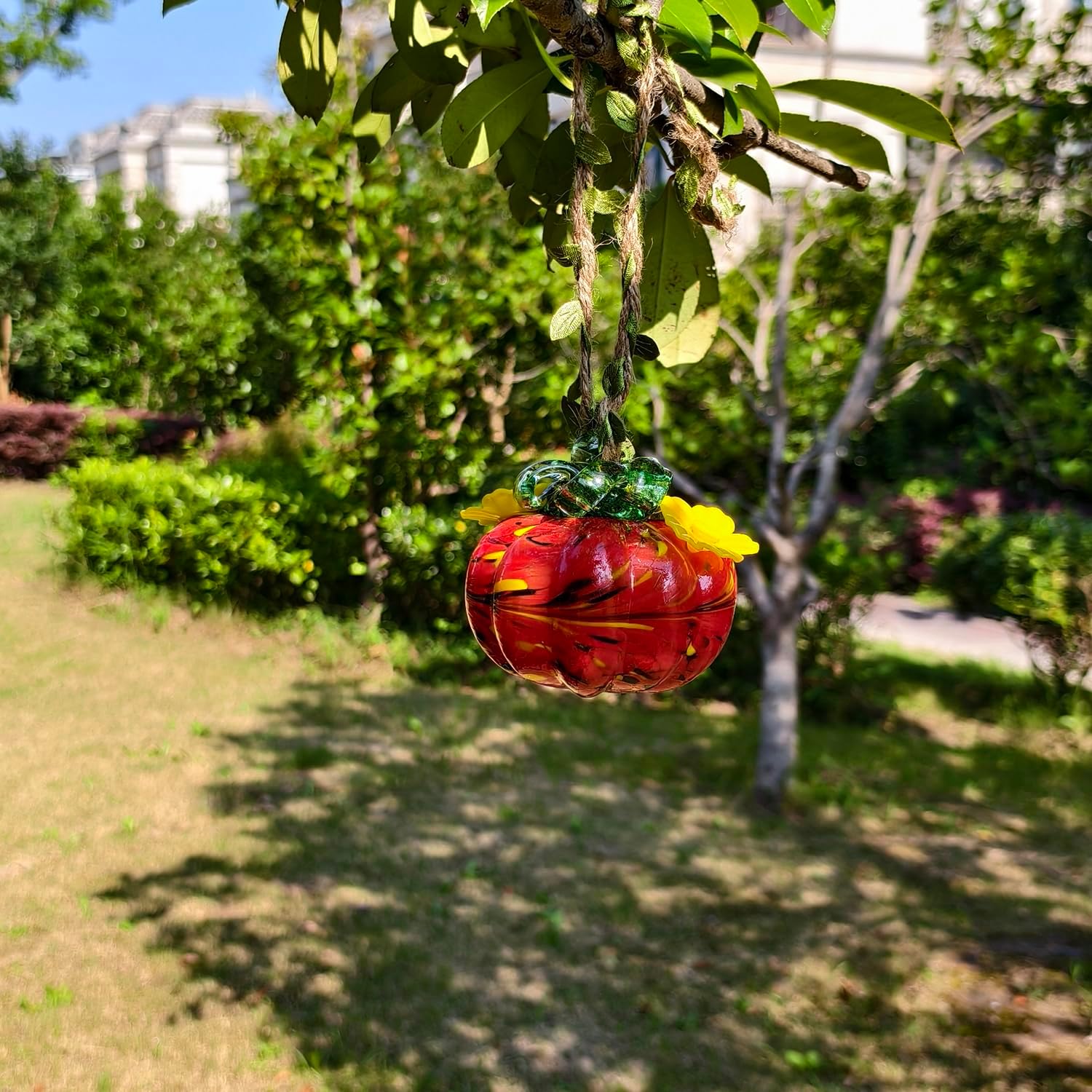 Small Glass Hummingbird Feeders for Outdoors Hanging - 2PC X Red Hand Blown Glass Pumpkin Nectar Feeding, 2 Flowers Feeding Ports, Decor for Garden/Backyard Outside
