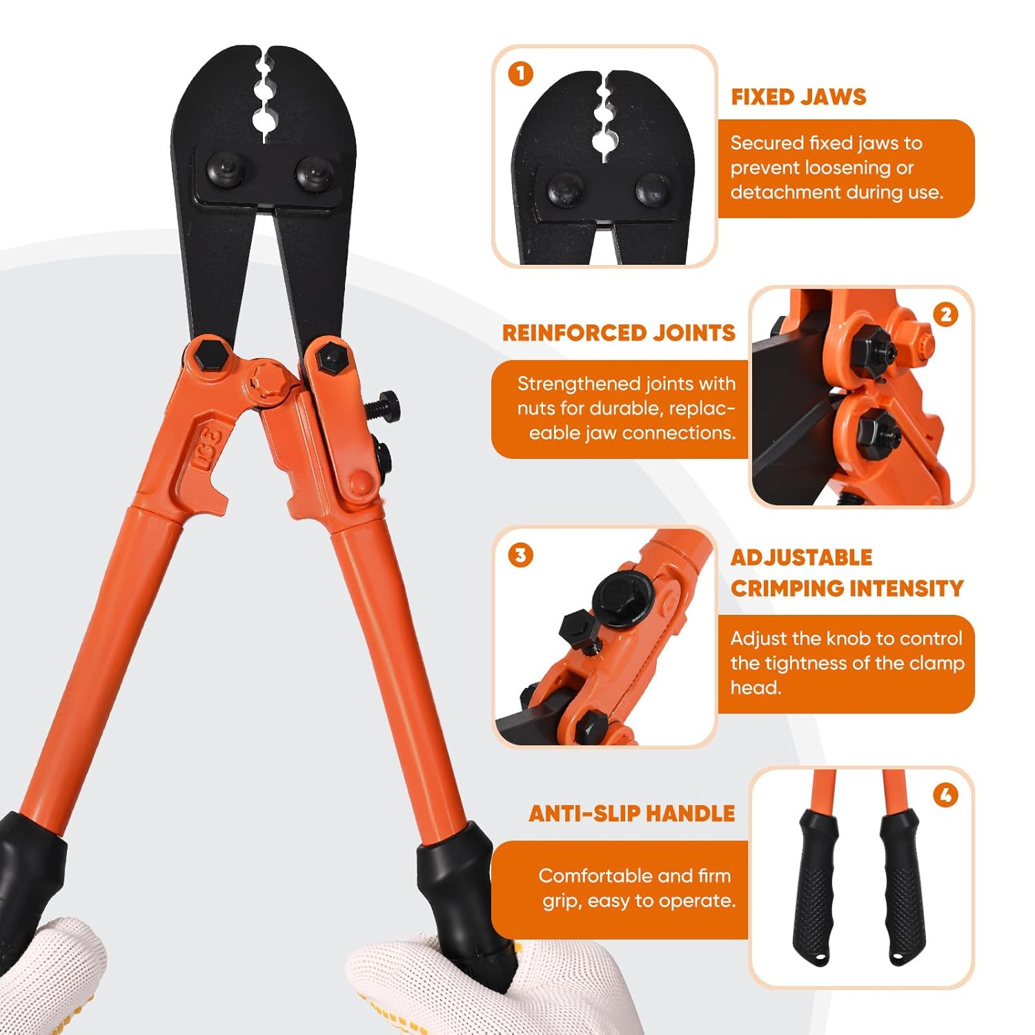 - Heavy-duty Swaging Tool: crafted from premium steel and high-quality metals to withstand rigorous use. The extended handle provides superior leverage, allowing you to crimp cables effortlessly for a secure, professional finish. Its ergonomic non-slip grip offers maximum comfort and control, reducing hand strain even during prolonged jobs. Versatile and reliable, it features three precision crimping positions (1/16", 3/32", and 1/8") to handle aluminum oval sleeves, double sleeves, and annealed copper sleeves with ease. For best results: ✓ Crimp once - don't squeeze multiple times. ✓ Always use the right size sleeves.