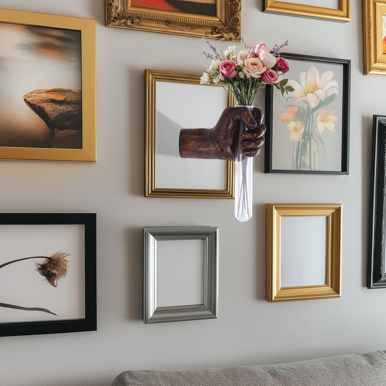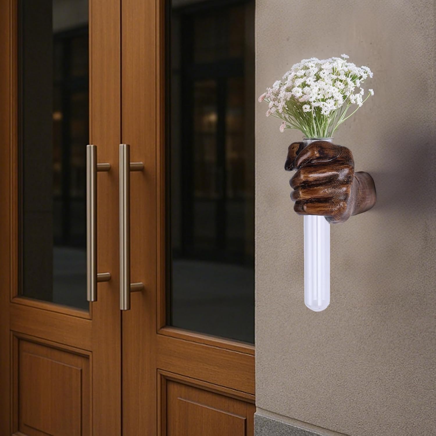 - Introducing our pride and joy, the Creative Wall-Mounted Sculpture featuring an exquisite hand-shaped design with a stunning test tube vase, adding a unique charm to your home decor.