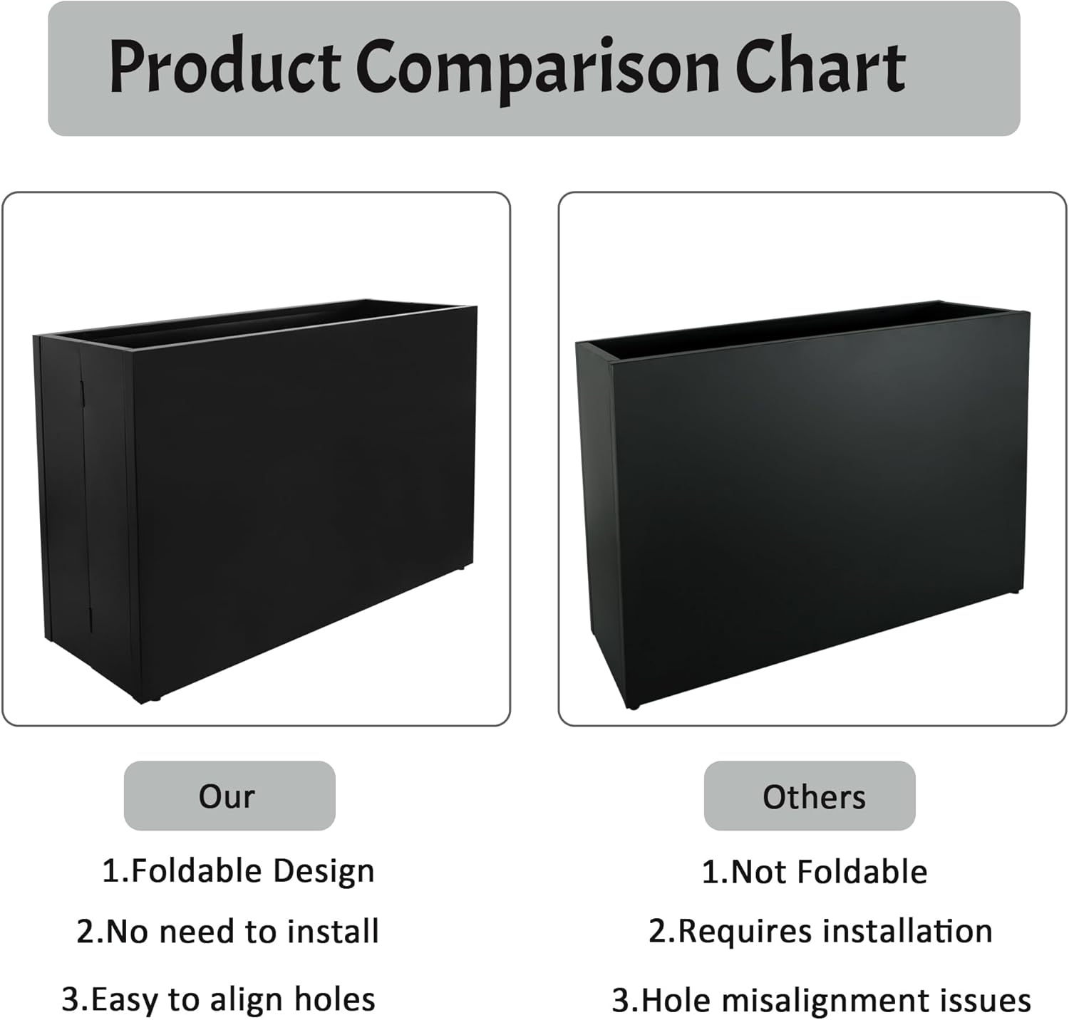 - 【Foldable Design — No Assembly Required】: The innovative foldable design makes setup quick and easy — just unfold the flower box and tighten 4 screws on the top and bottom. No complicated instructions or tools required!