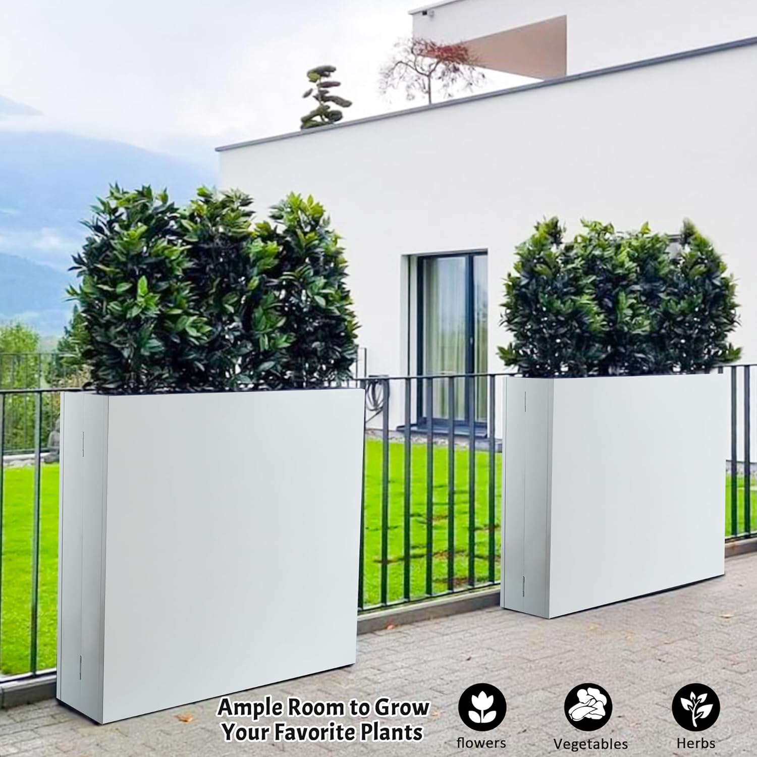 - 【High‑Quality Material】:The White Rectangular Planter Box Made of thick galvanized steel with a high‑temperature coating, this flower box is antirust and anti-corrosion process, and built to withstand harsh weather, keeping its beauty and durability over time.